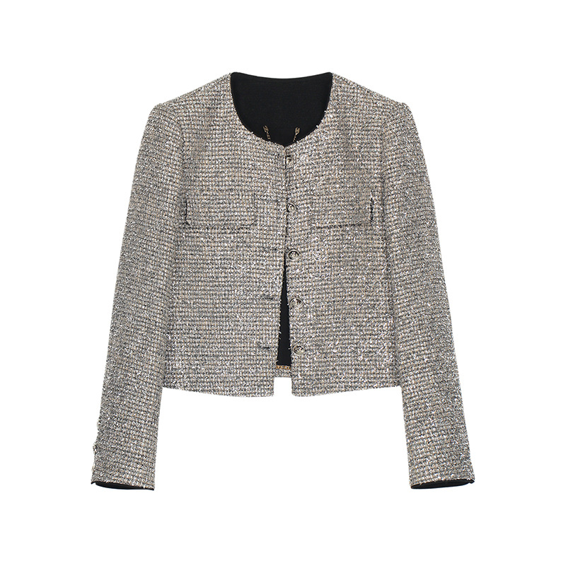 春秋新款轻奢高级感银色碎钻亮丝短款小香风外套开衫130165