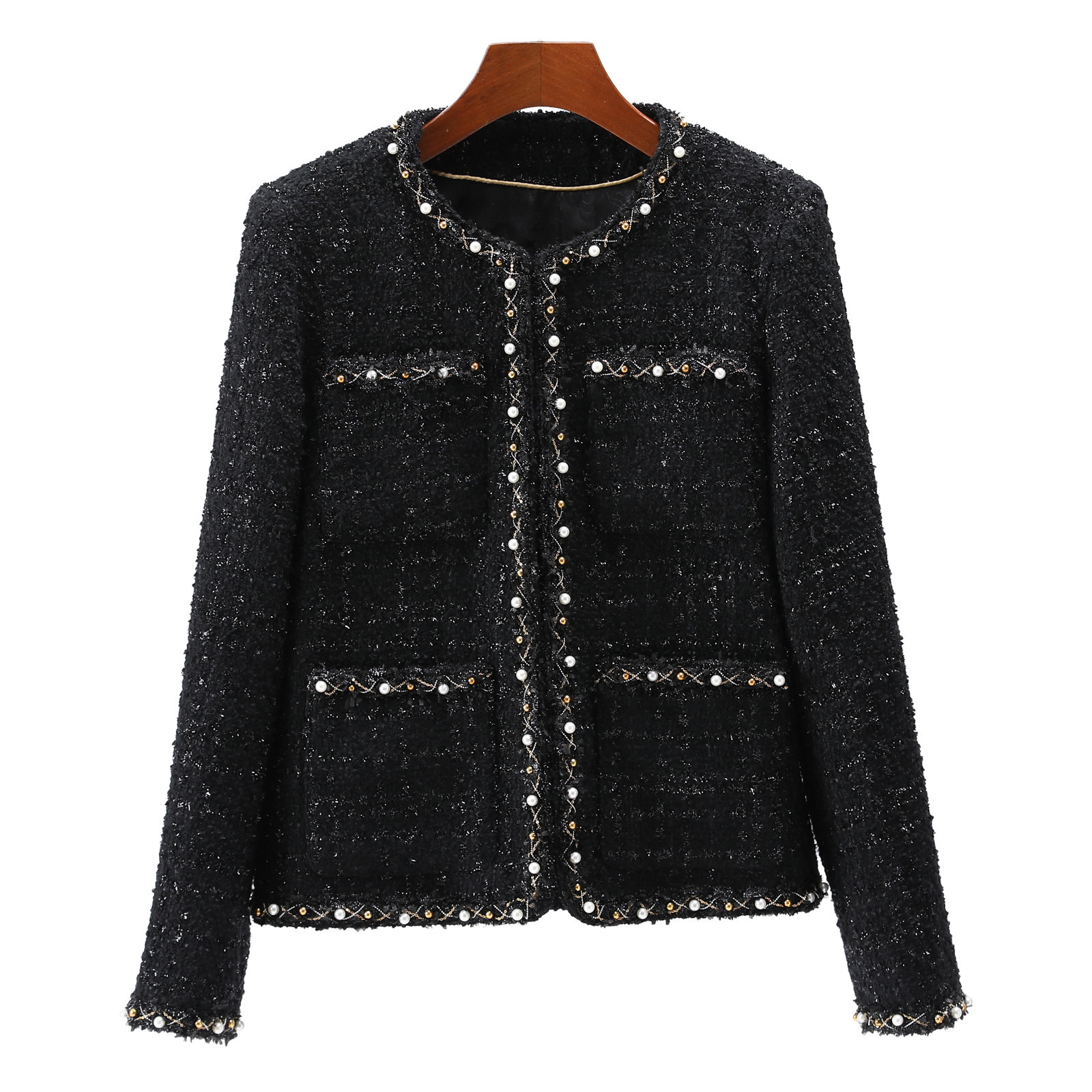 2025年新作フランス製ヘビービーズブラックファッション多用途デザインの小さなフレグランスジャケットを特別にデザイン