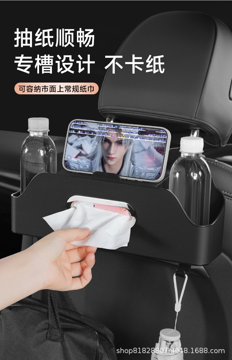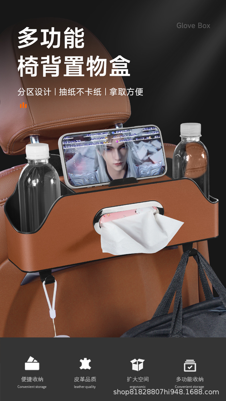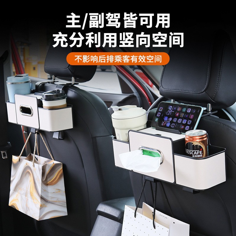 车载座椅后背收纳盒挂式纸巾盒新款多功能车载储物盒放水杯置物架