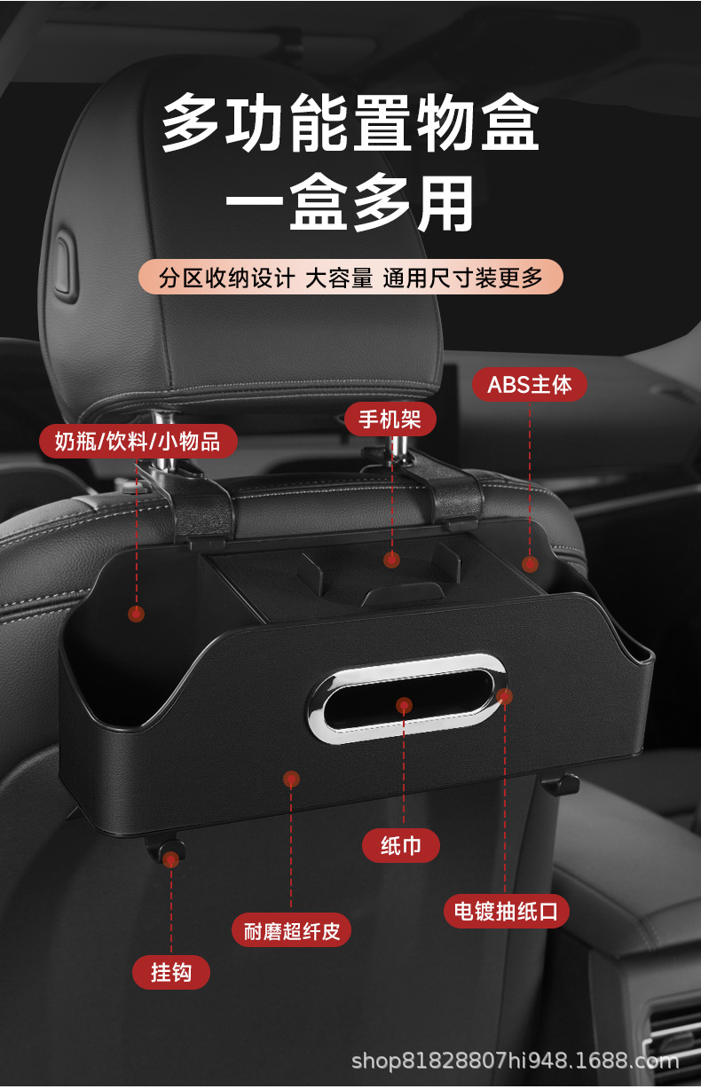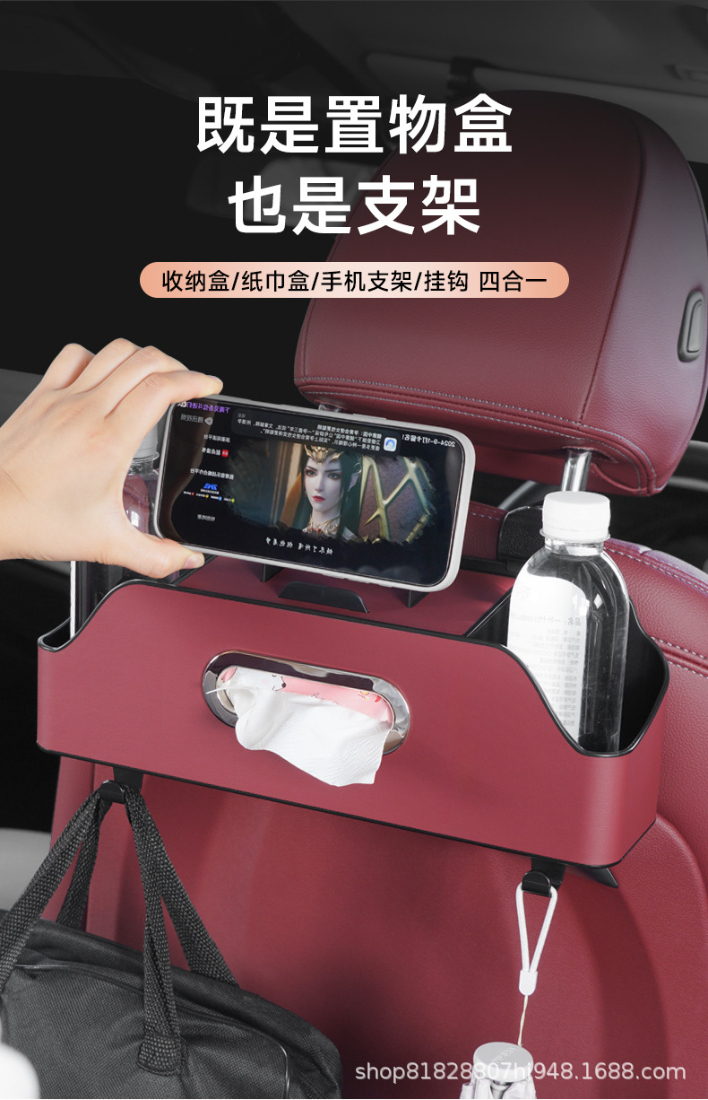 跨境汽车椅背多功能收纳盒置物架水杯架座椅后背排储物盒车内挂钩