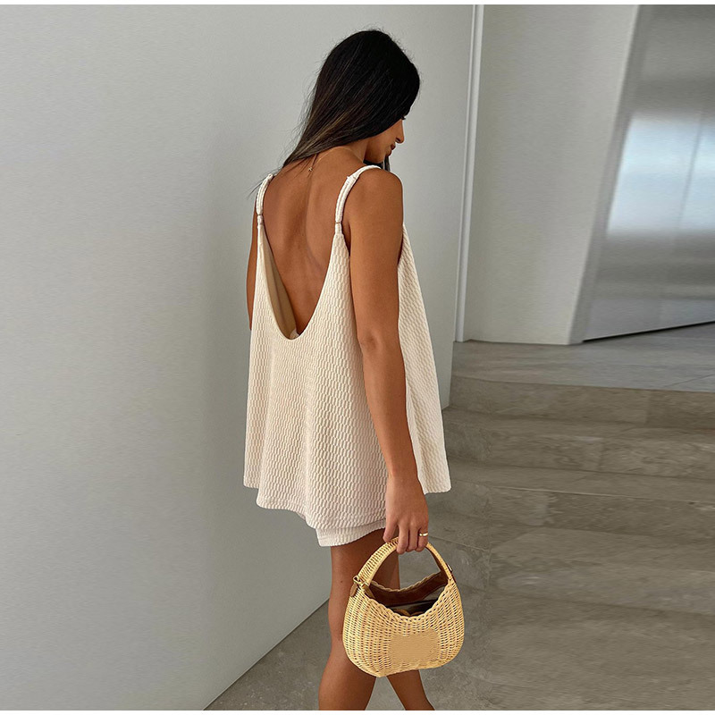 2025新型ファッション気質優雅vネックストラップ上着快適カジュアル欧米クロスボーダー怠惰風女装