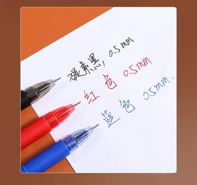 朝の光は中性ペンk 35を押します。学生は水性ペンで炭素芯0.5サインペンの弾頭を試験します。