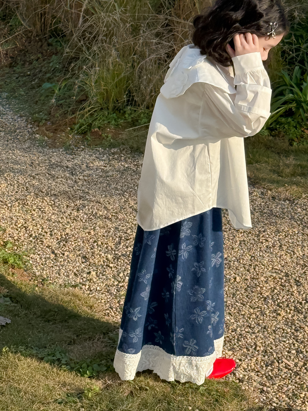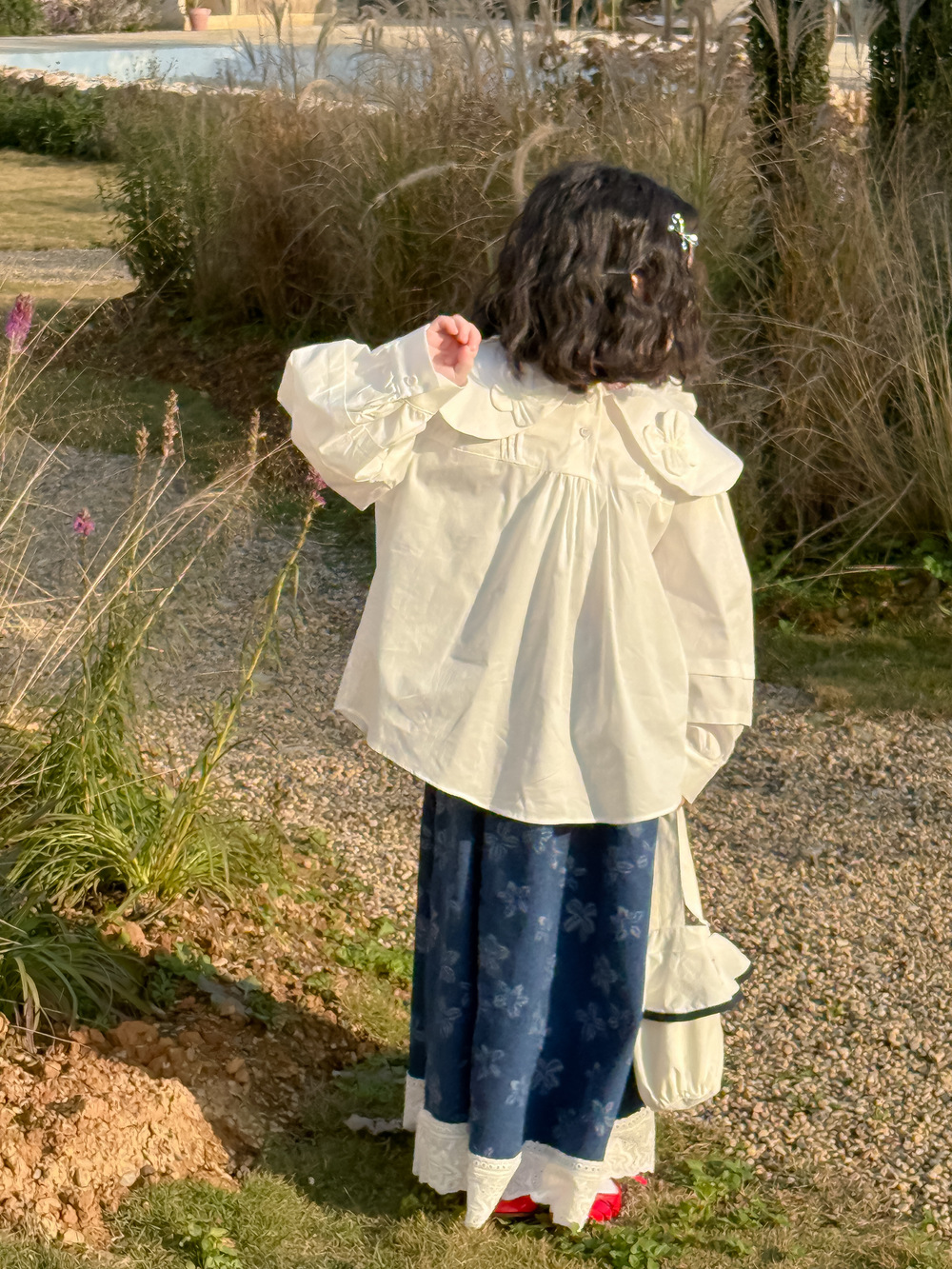 女童衬衣2025秋季新款女宝森系复古提花花边上衣儿童设计感娃娃衫