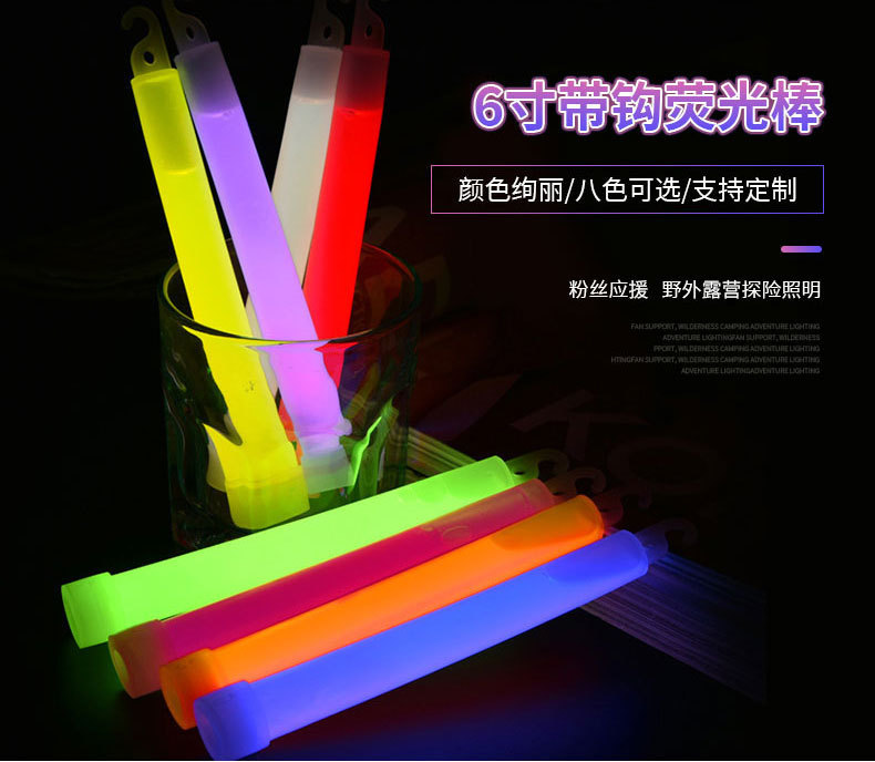 メーカー直販六寸棒フック付き蛍光棒緊急照明発光棒化学液体プラスチック棒フック6英