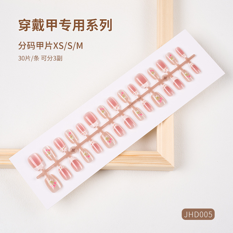 人気の手作りネイル、純手作りリボン、パールアイス、軽い高級マニキュア、取り外し可能な付け爪、10枚、サイズ分け