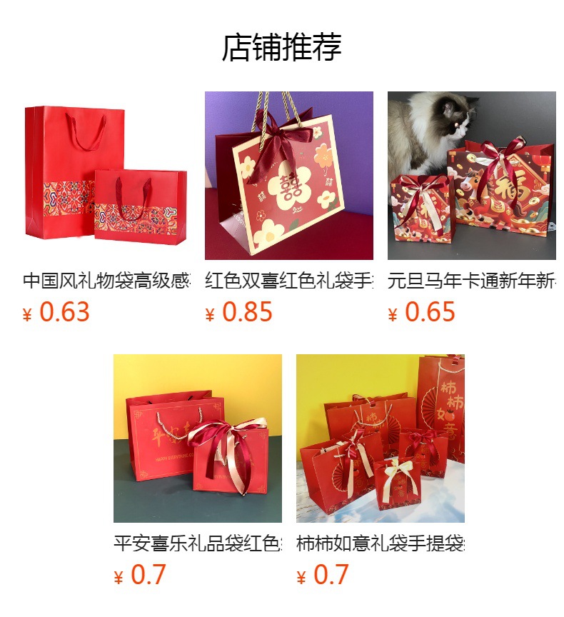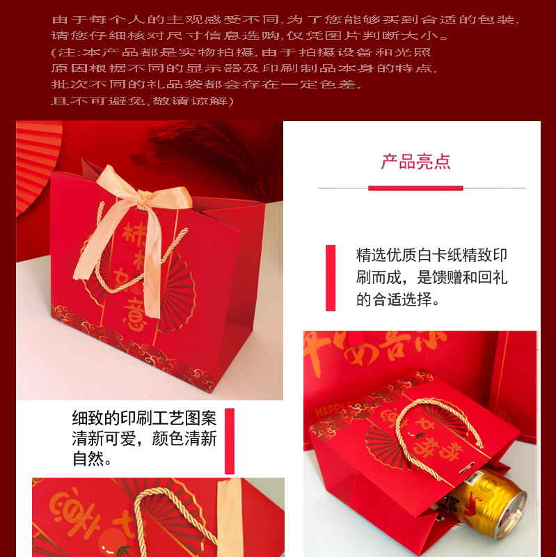 万家灯火礼品袋红色手提袋喜糖包装袋配丝带现货伴手礼纸袋优惠