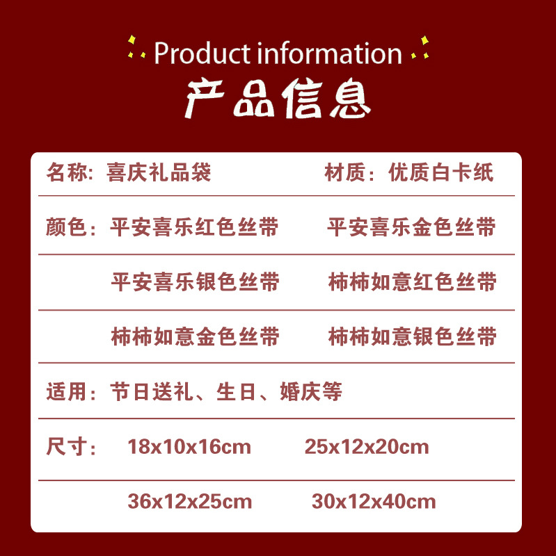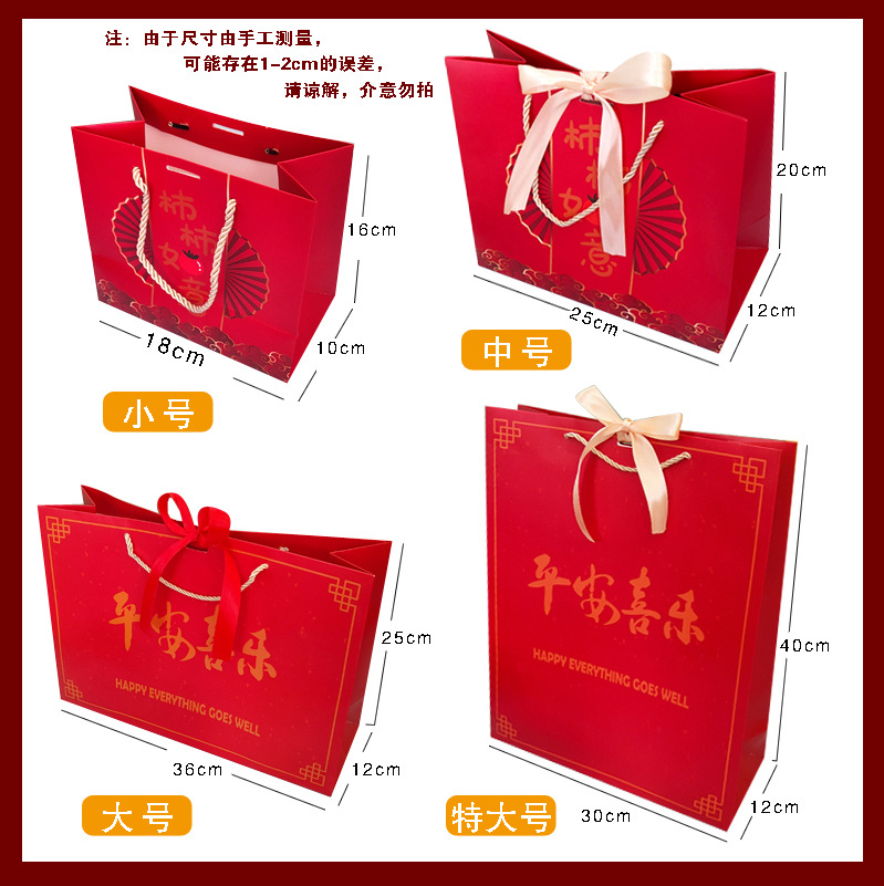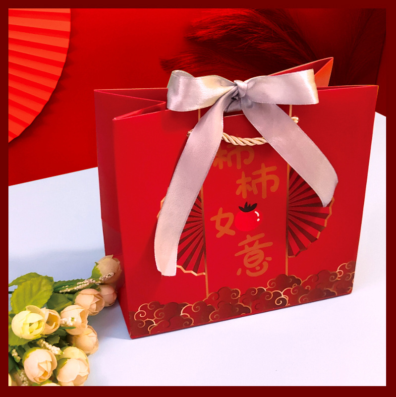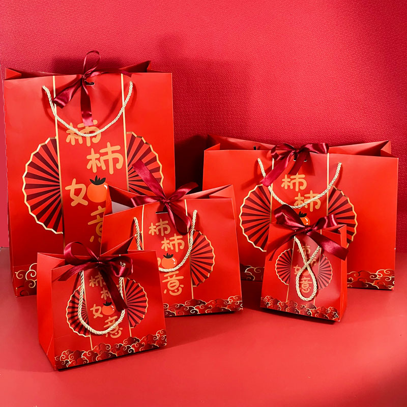 柿柿如意ギフトバッグ、ハンドバッグ、赤い誕生日プレゼント包装袋、お土産紙袋、ギフトバッグ、インスタ風