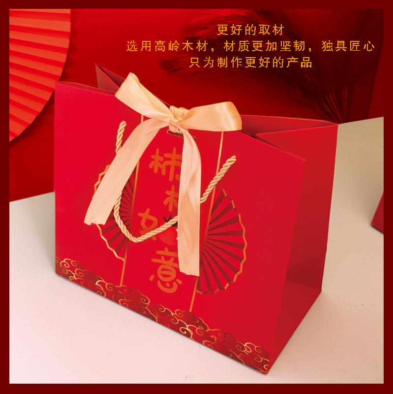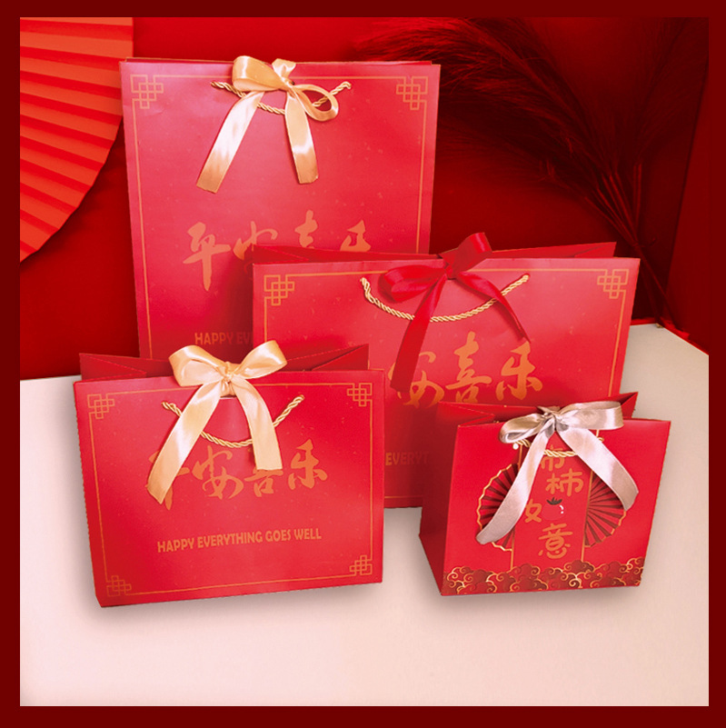 中国風ギフトバッグ高級感喜糖紙袋赤手提げ袋ギフトバッグ喜袋ギフトボックス袋