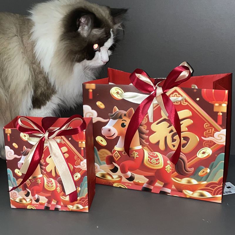 元旦马年卡通新年新春礼袋礼品袋手提袋高级感伴手礼袋礼盒袋