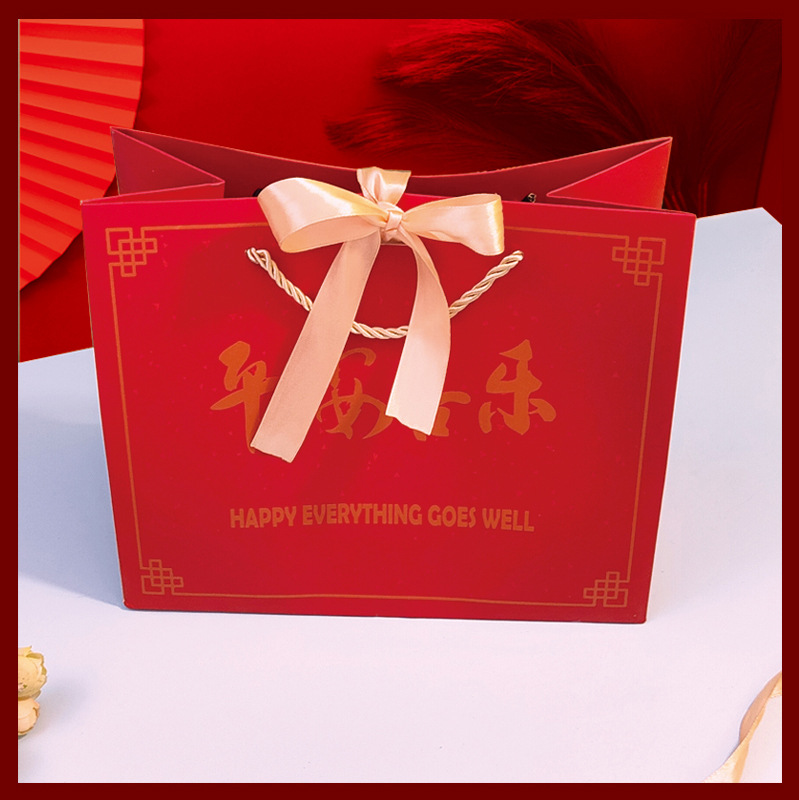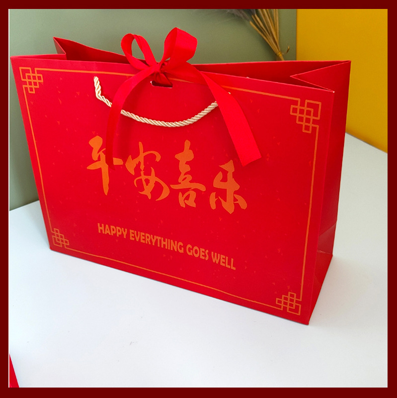 平安喜楽ギフトバッグ 赤い紙製包装袋 紙袋 高級感のあるバッグ 手持ちで持ち運びに便利で見た目も良くなる