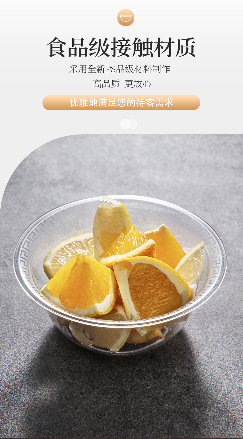 使い捨て水晶碗は透明で家庭用酒席の食器を厚くします。