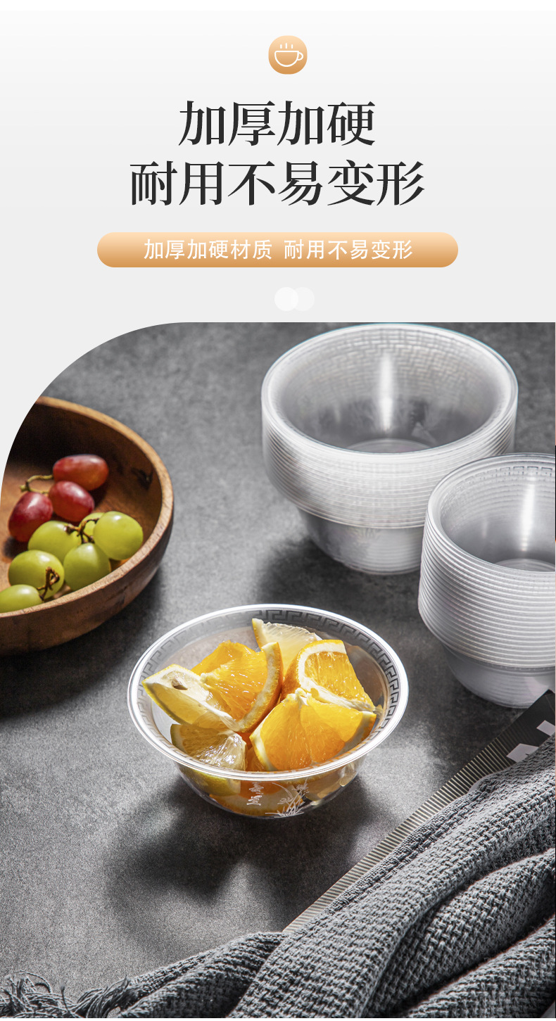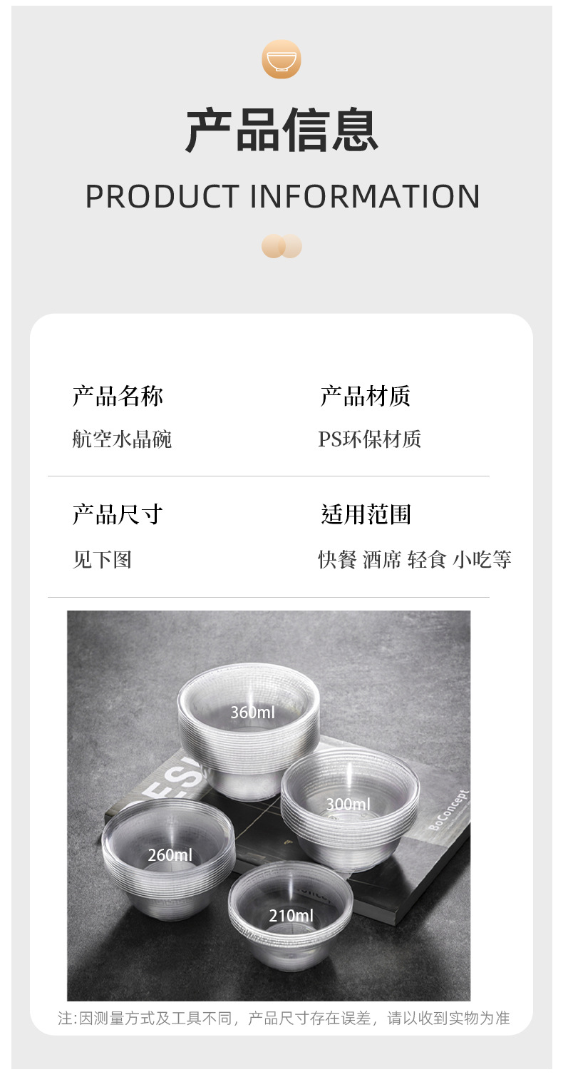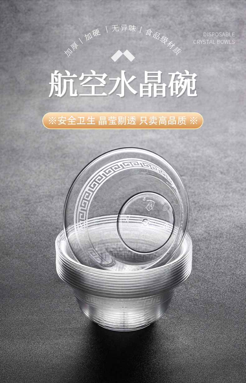 使い捨て碗航空水晶碗食品級厚手硬質鍋碗高温透明環境保護硬質茶碗