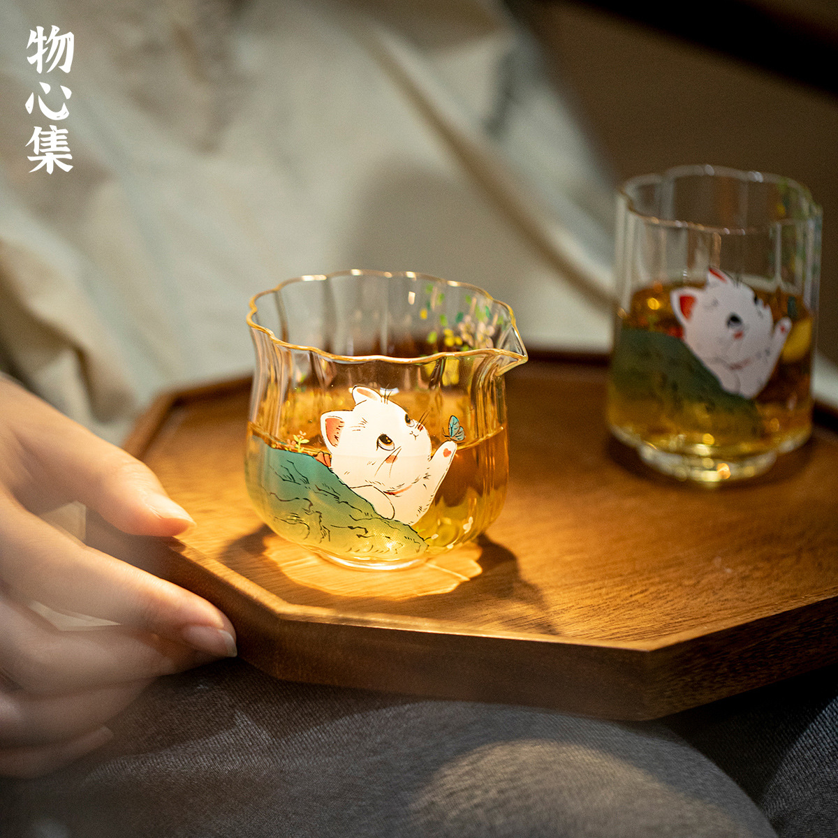 物心集小清新可爱小猫咪公道杯耐高温玻璃公杯小号分茶器匀杯日式