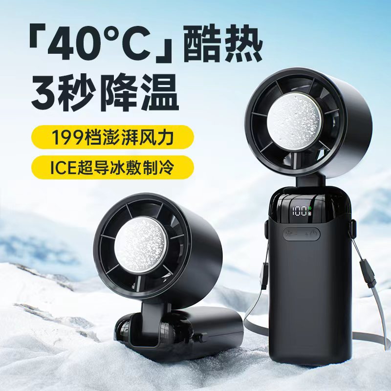 新型越境半導体冷凍冷湿式高速ハンドヘルドファン、ポータブルUSBデジタルディスプレイ折りたたみ式屋外小型ファン