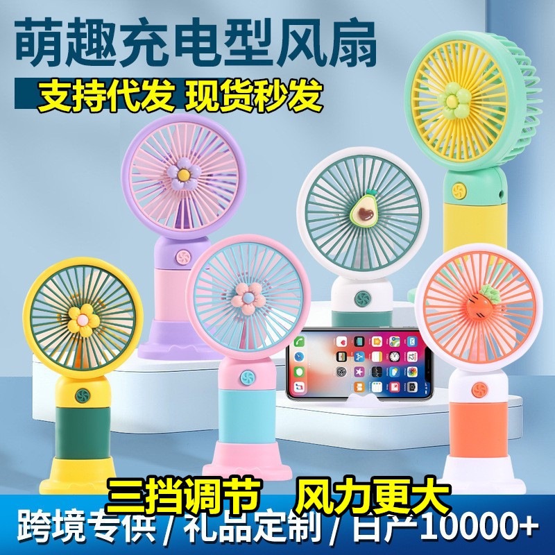 新しい花の果物は扇風機を持っています。家庭用屋外携帯ミニ携帯電話USB充電デスクトップ扇風機卸売りです。