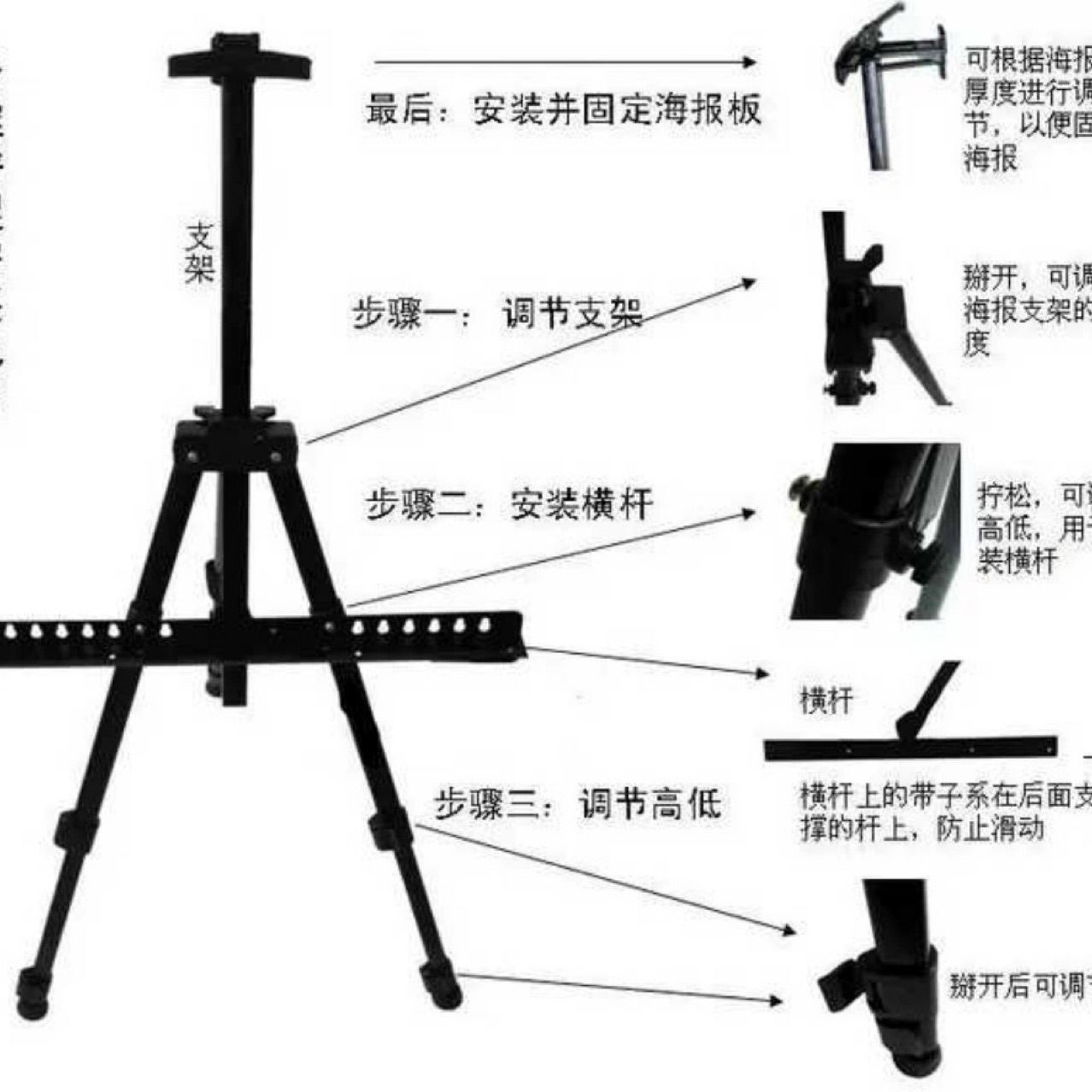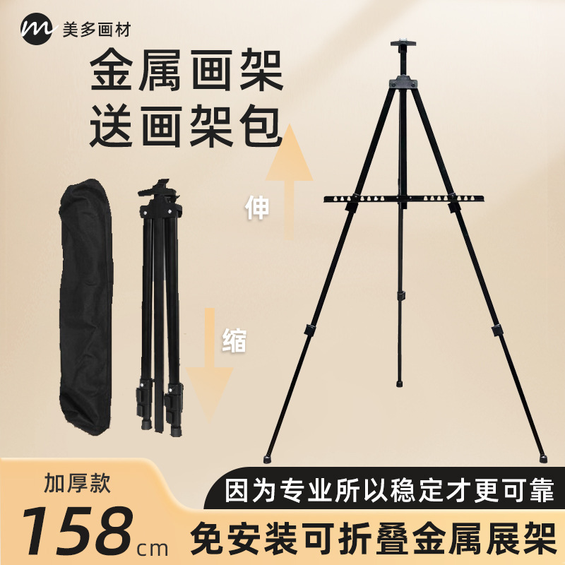 铁画架便携式可伸缩金属画架三脚架广告展示架可折叠户外写生画架