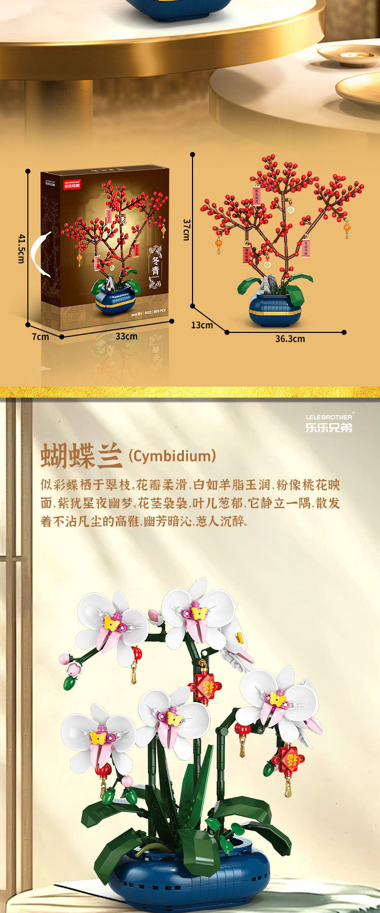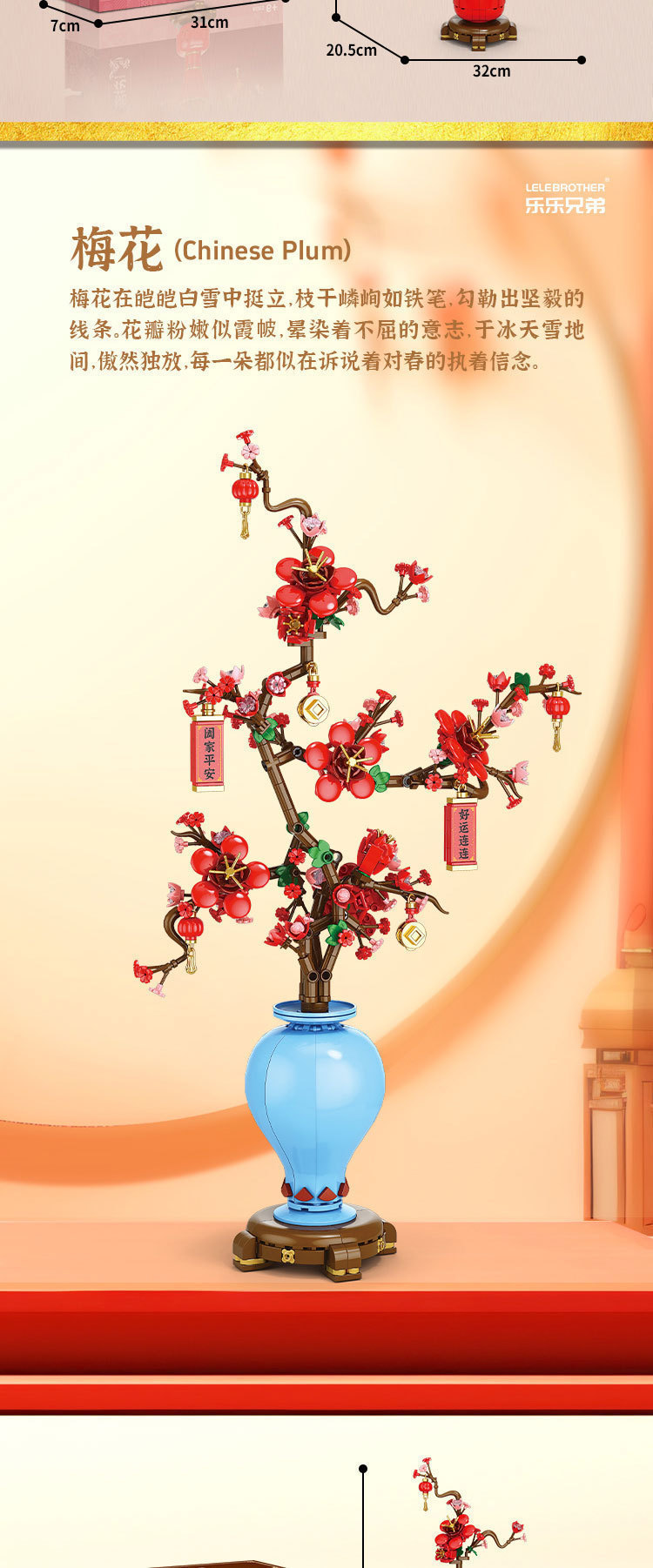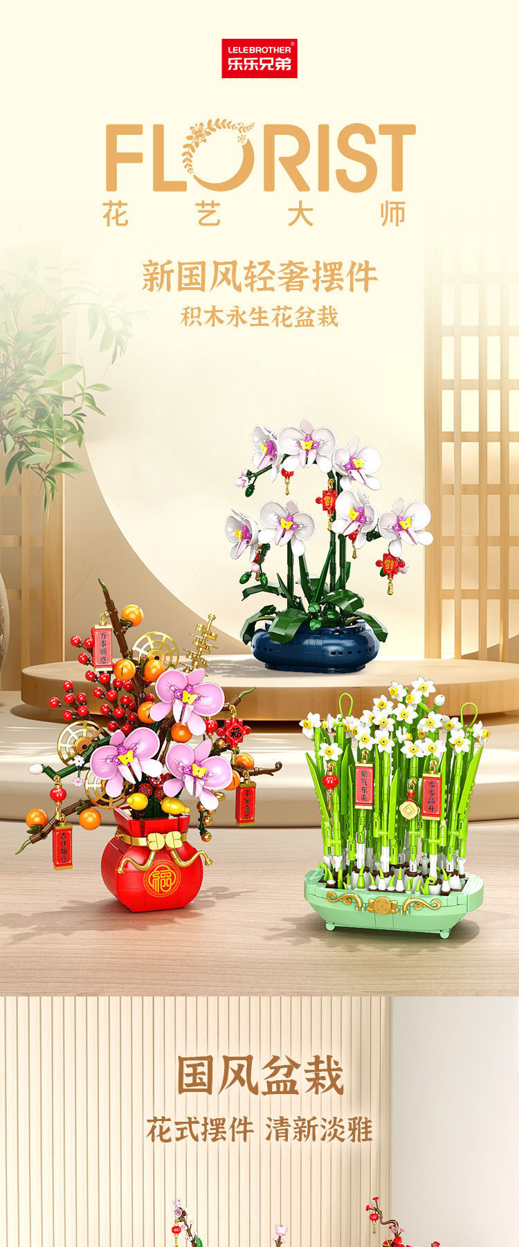 蛇年新春積み木花卉桃花蘭永生花マスコット置物互換レゴ新年プレゼント玩具