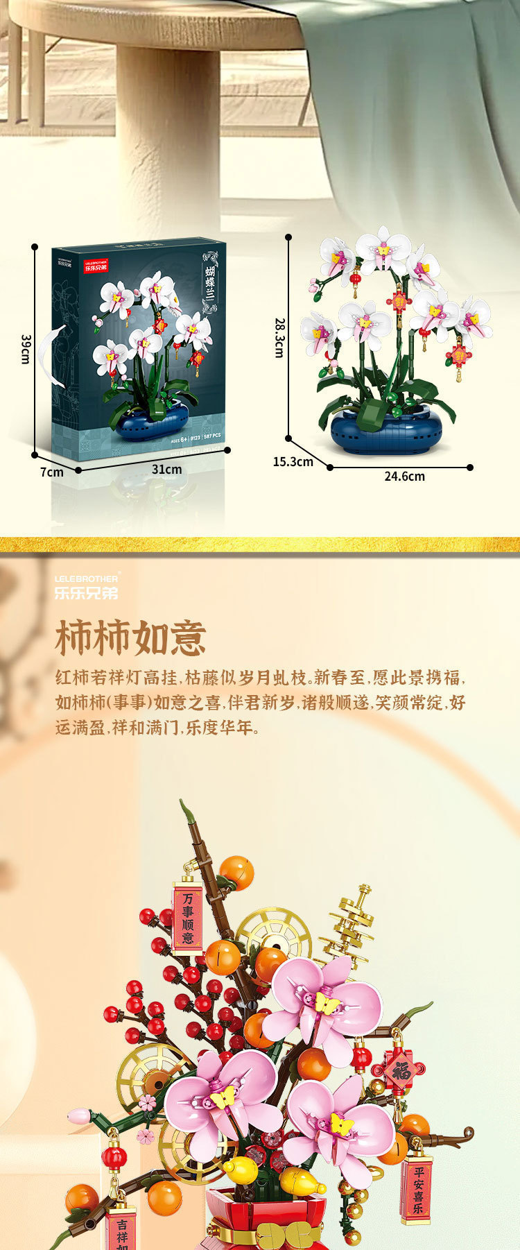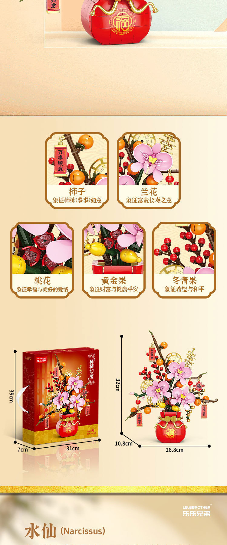 楽楽兄弟9121柿如意新春花かご積み木盛り合わせ知育児童玩具プレゼント飾りアクセサリー