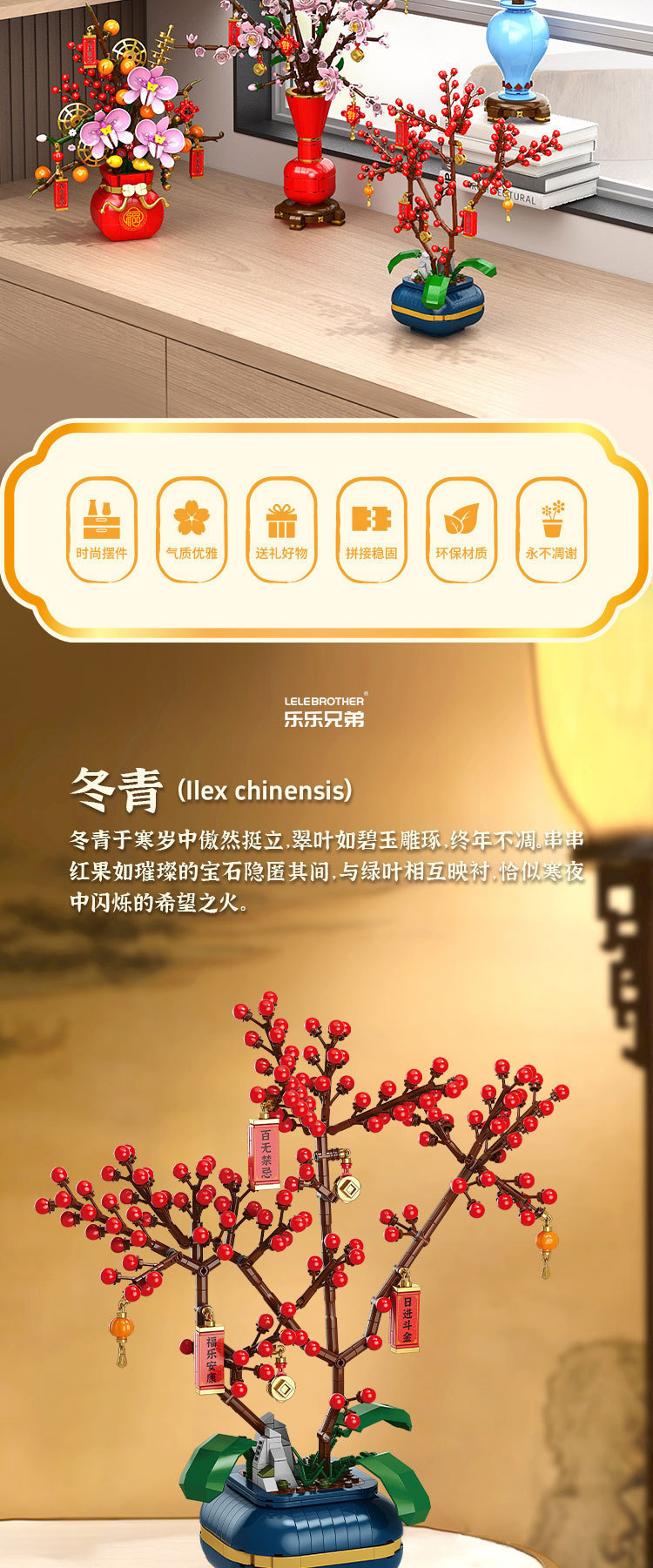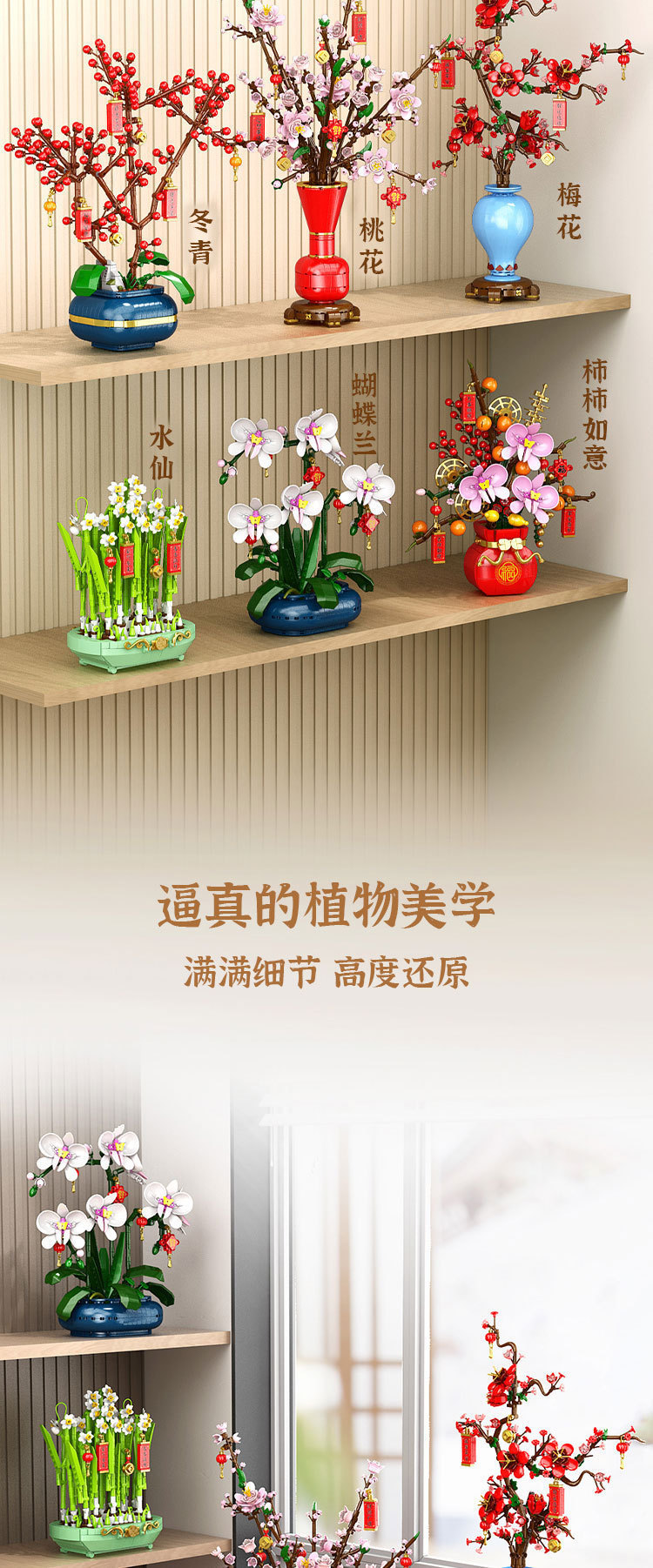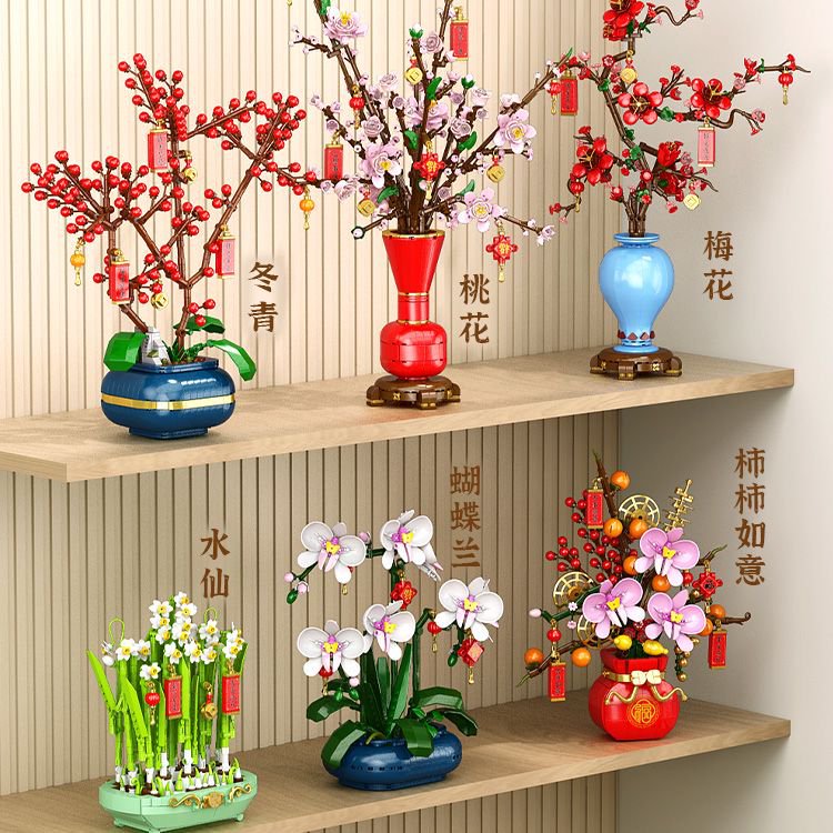 新商品新春盆栽梅柿如意水仙冬青微粒盛り合わせ積み木玩具卸売り