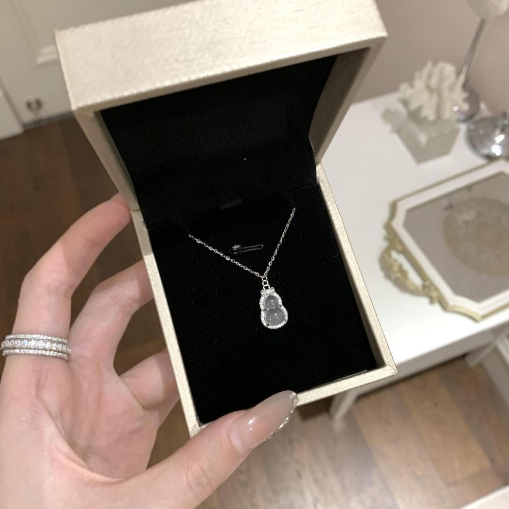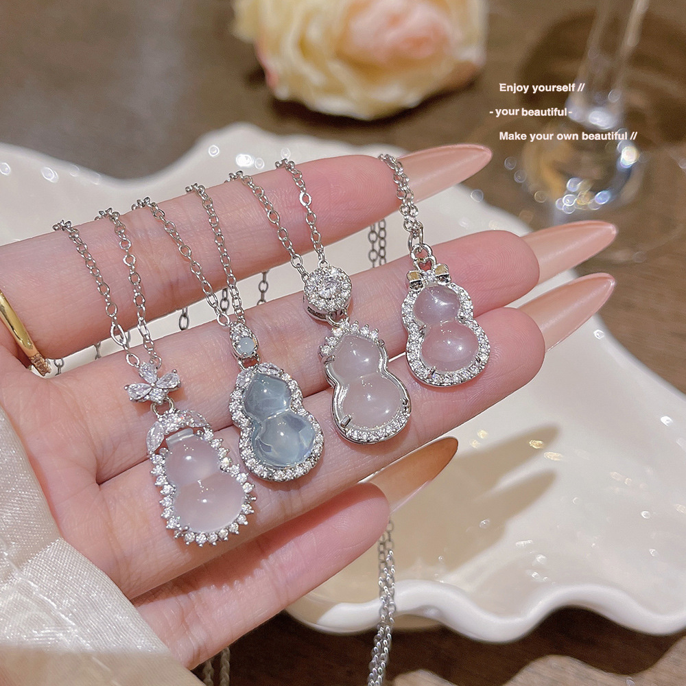 新しい中国風の氷透明ひょうたんネックレスライト高級ニッチ気質模造白カルセドニーペンダントジュエリー女性のハイエンド鎖骨チェーン