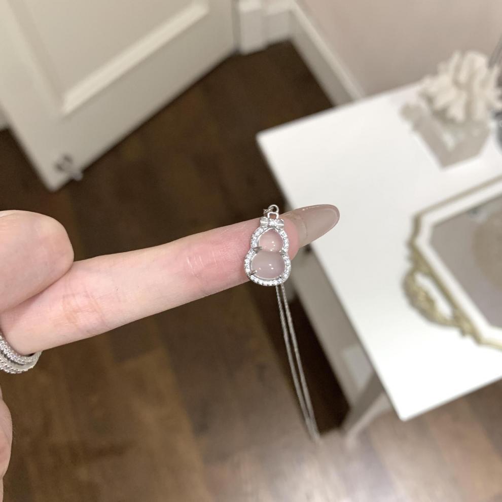 新しい中国式のピンクの猫の目の石のヒョウタンのネックレスの女性の鎖の鎖は軽くて豪華です。