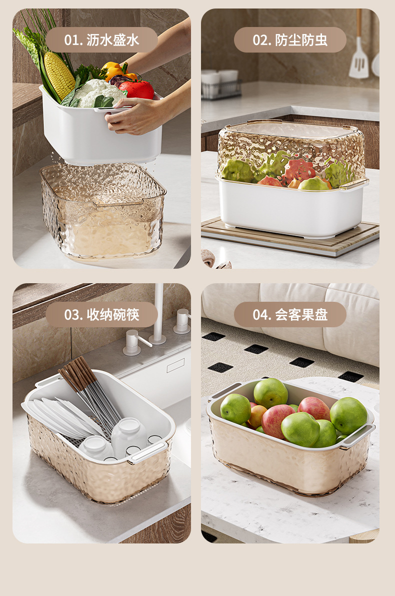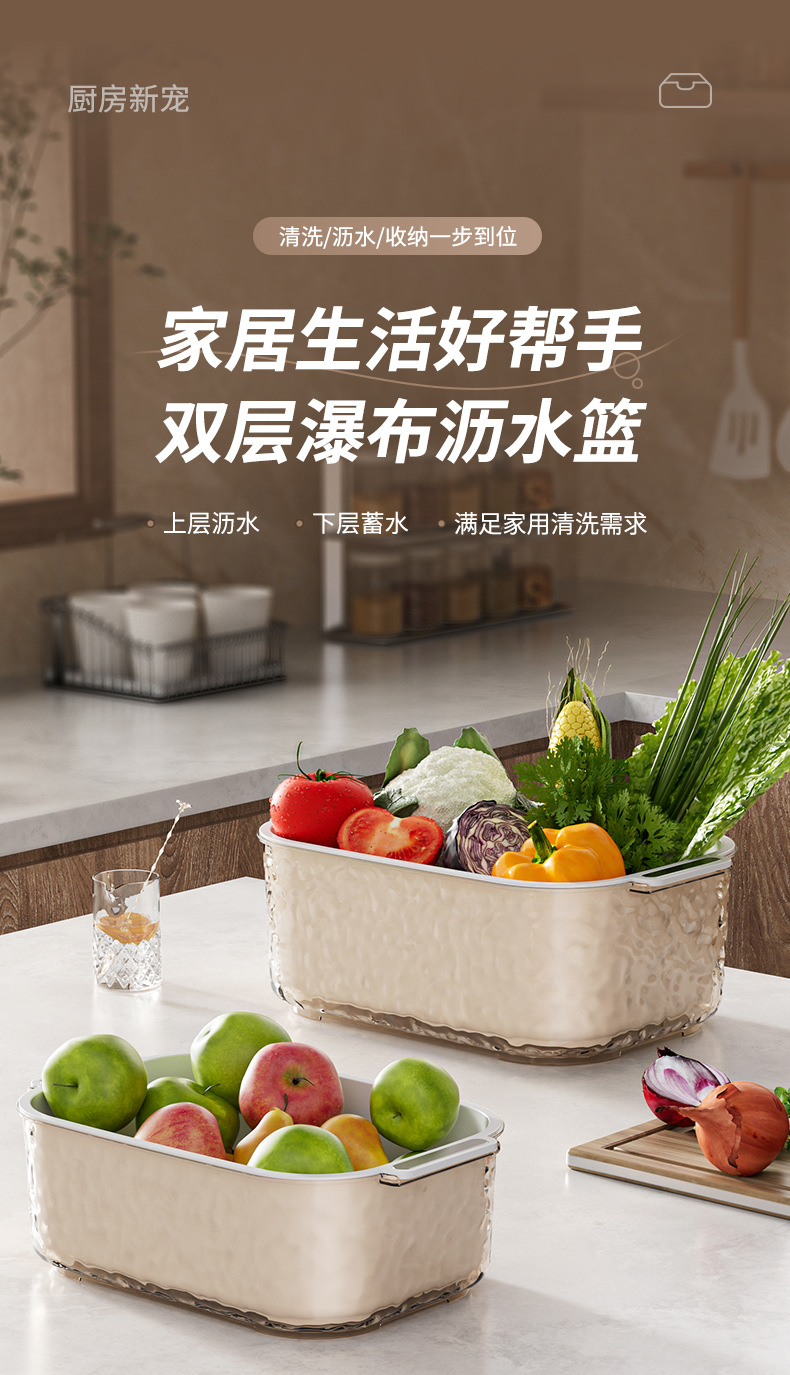 北欧二重野菜バスケットプラスチック水切りふるい台所果物収納バスケット収納野菜バスケット2点セット