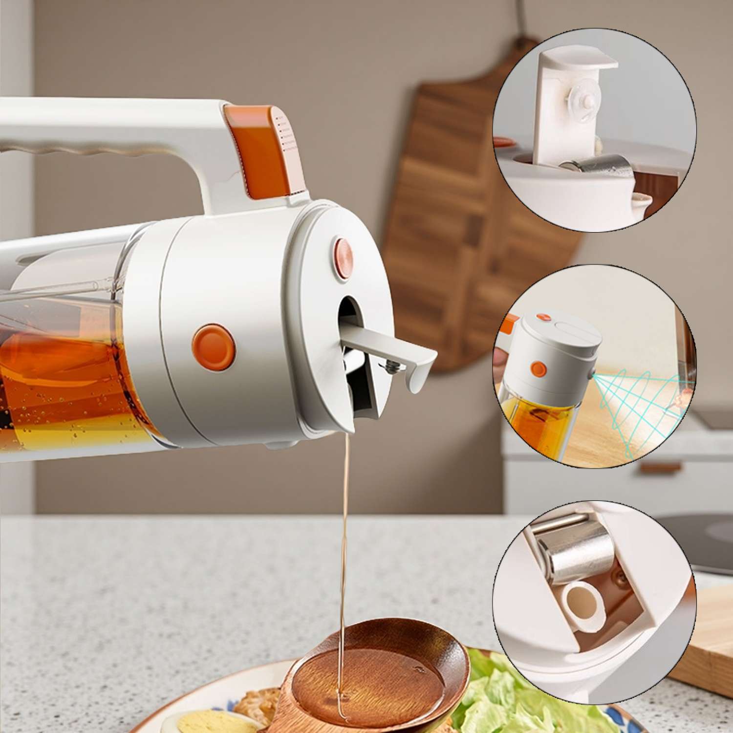 自动开盖喷倒二合一防漏不挂油玻璃油壶厨房家用大容量喷雾油瓶