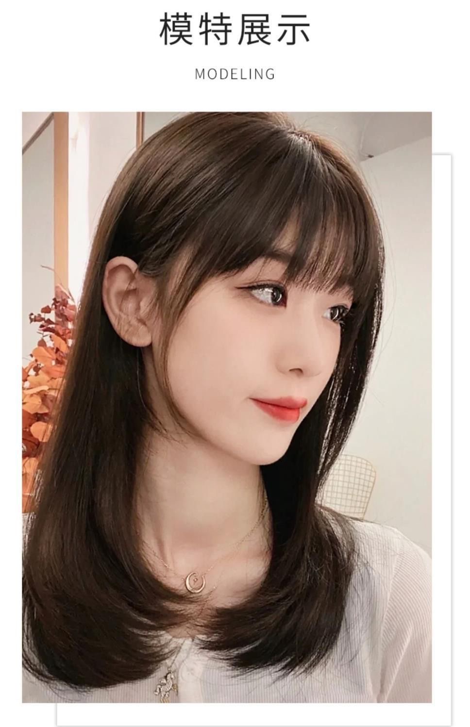 八の字の前髪のかつらの女性の切れはふわふわしています。