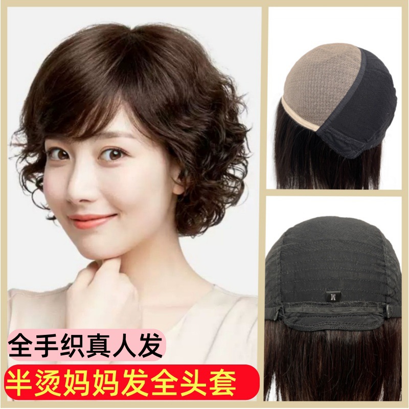 3番ネット後弾力ネット全真髪頭カバー短直髪女性かつらカバー全手織り高級全頭かつら