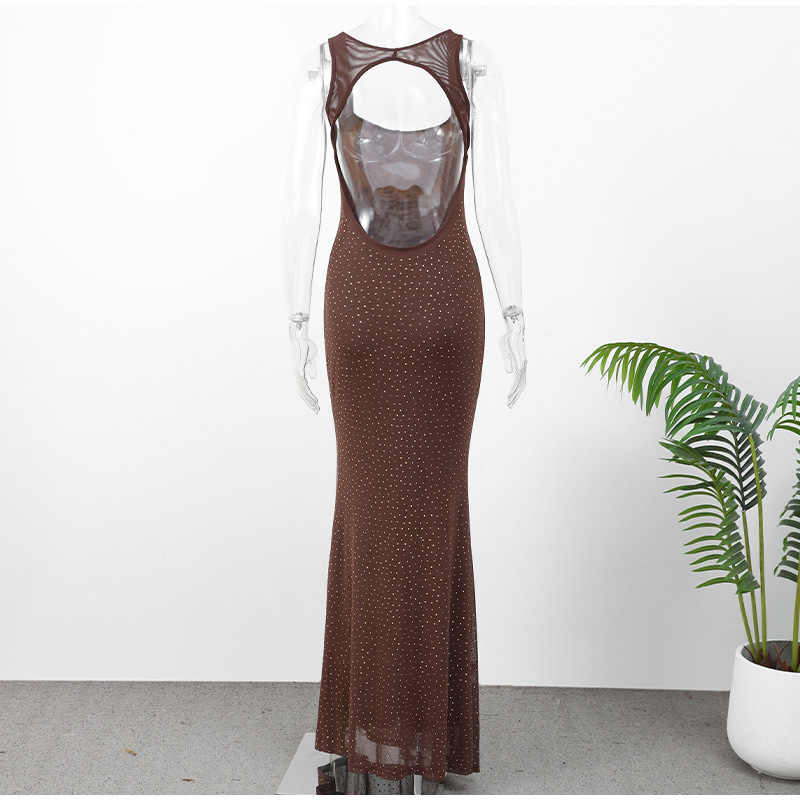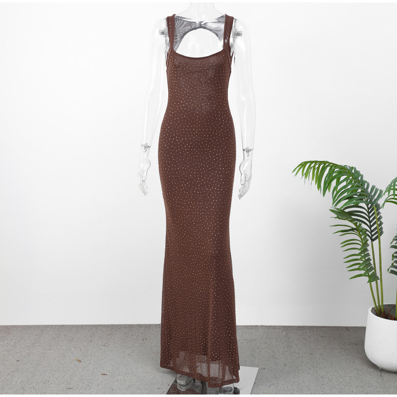 セクシーなホルターネック中空ステッチシースルーメッシュヒップカバードレス2025クロスボーダーヨーロッパとアメリカの夏スリムロングドレス