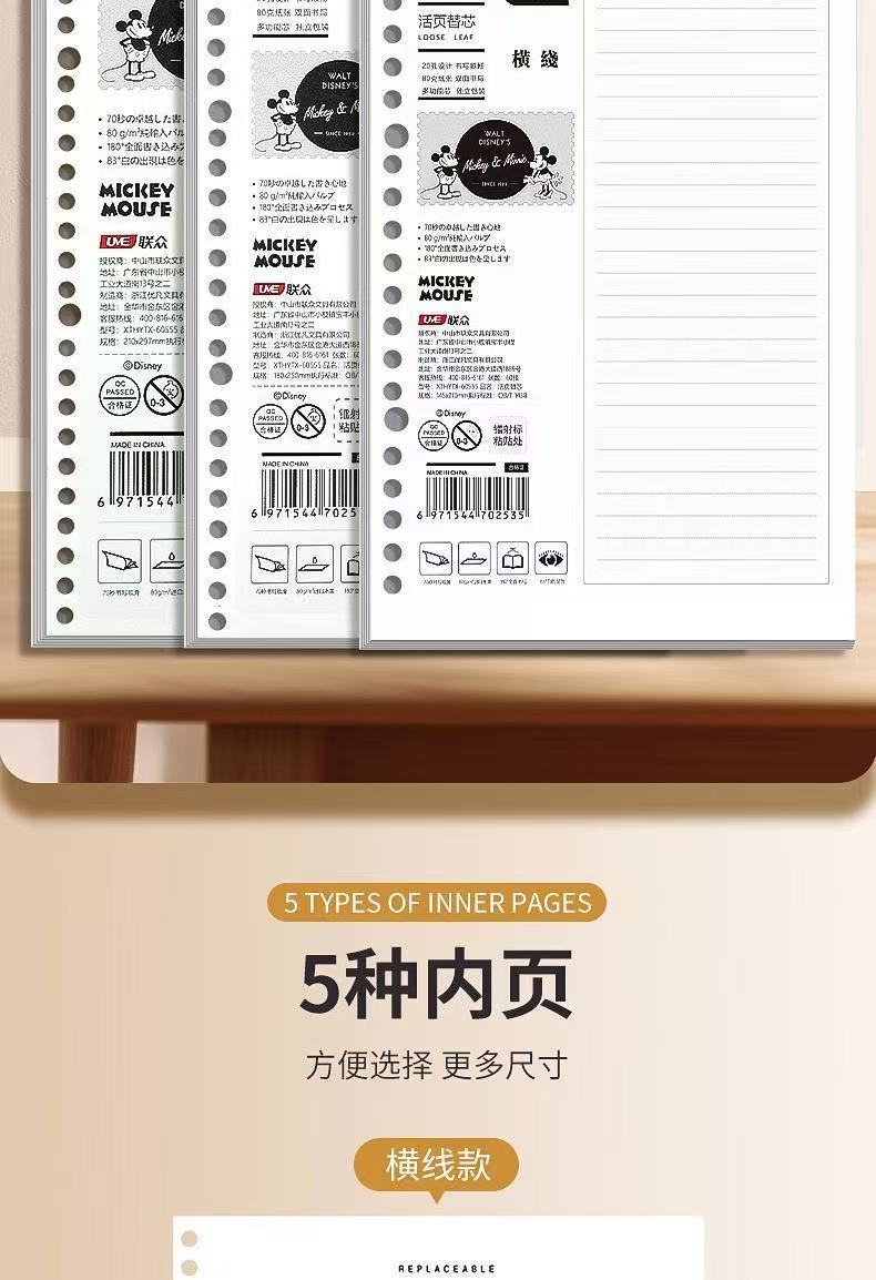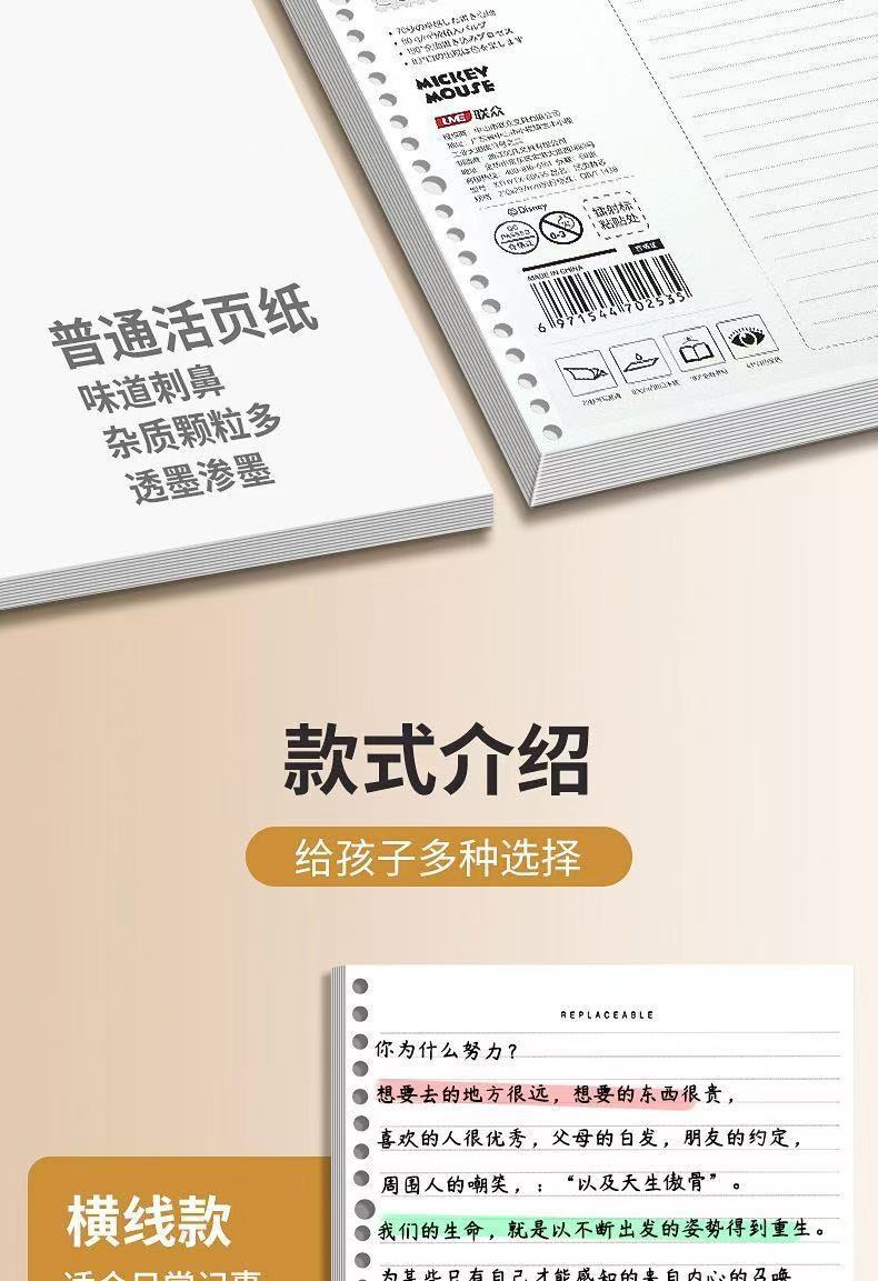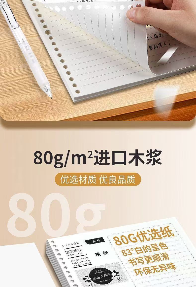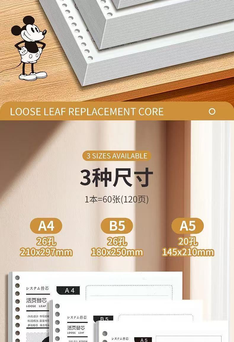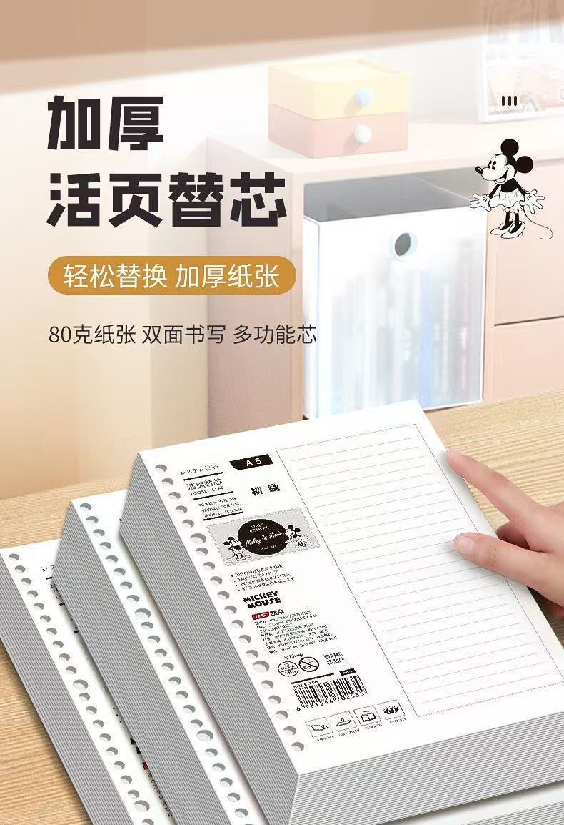 源头工厂米奇替芯B5加厚26孔活页纸方格横线高颜值厂家直销A5批发
