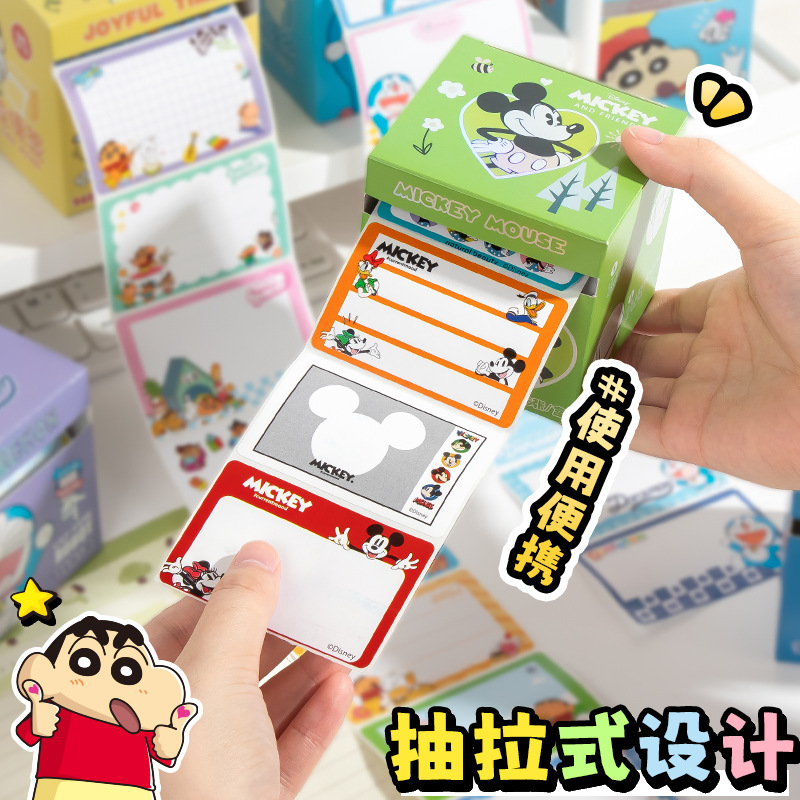 新款蜡笔小新抽拉便签不干胶贴纸叠叠乐佛系萌宠动漫便利贴便签贴