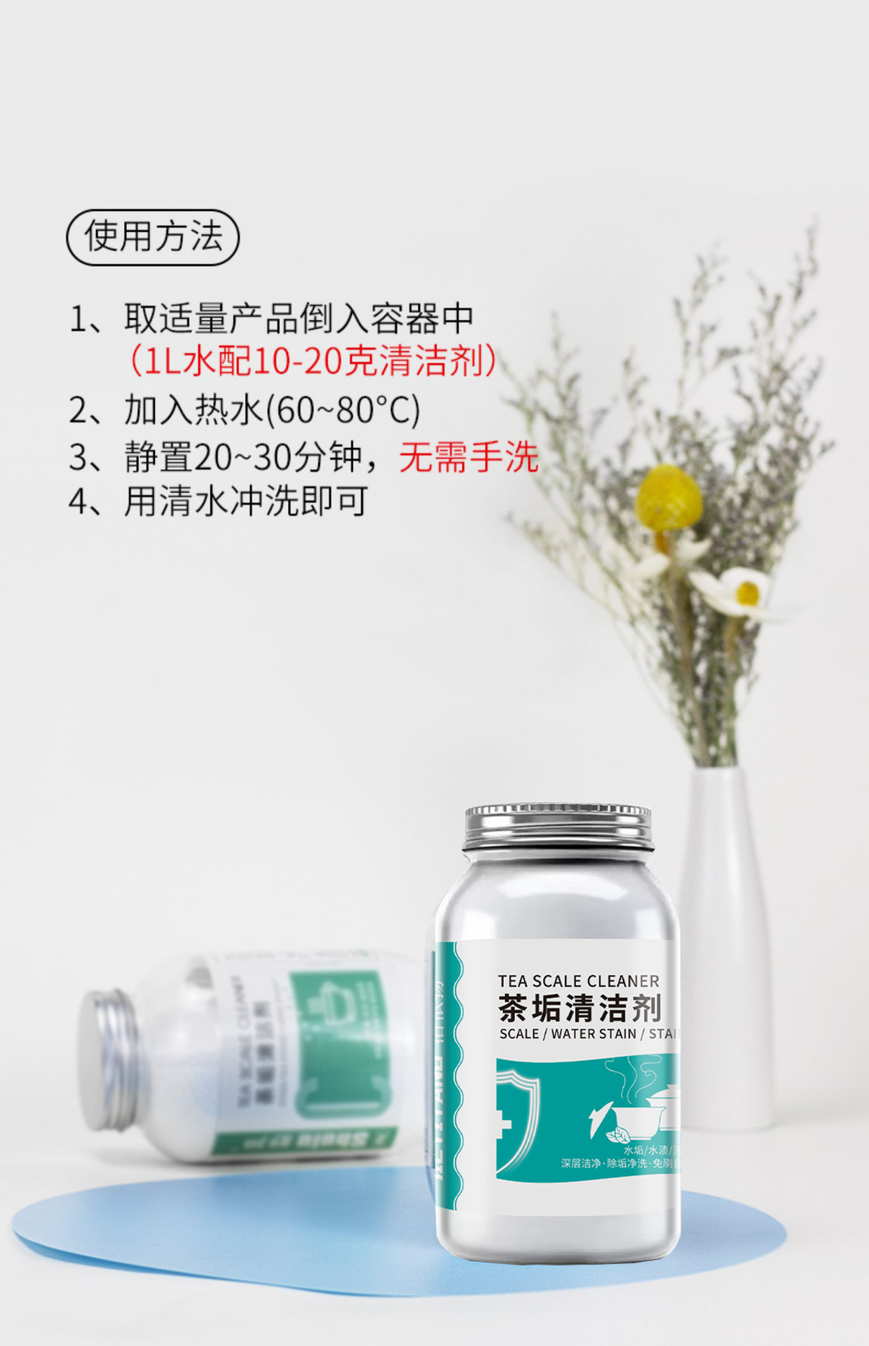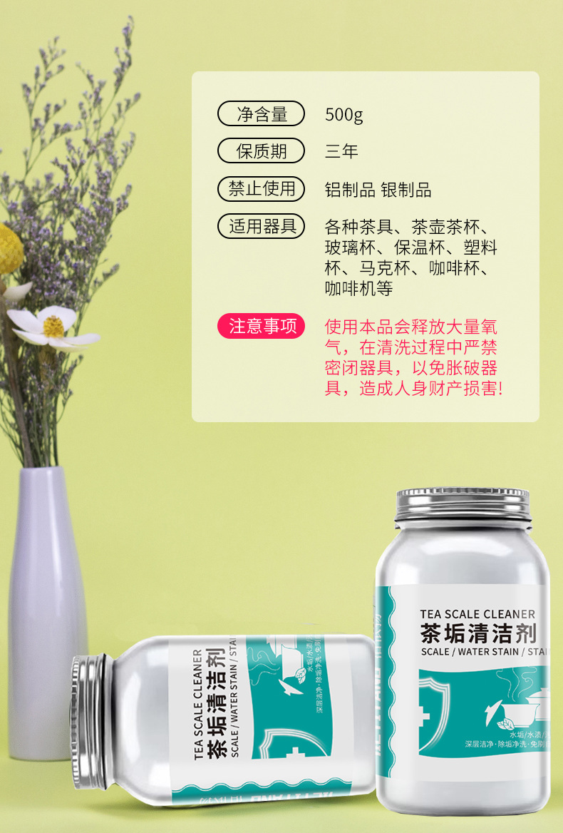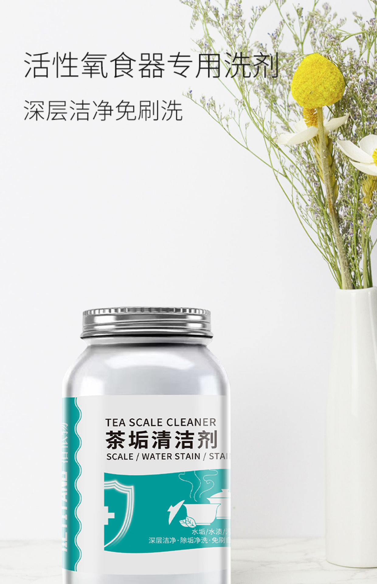 茶渋除去クリーナー、食品グレードの茶渋クリーナー、アーティファクトウォーターカップ、ティーカップ、ティーセット、スケール除去剤、活性酸素スケール除去剤パウダー