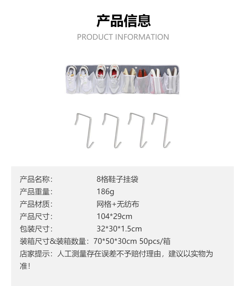 品名:【8格鞋子收纳挂袋 】OPP袋装