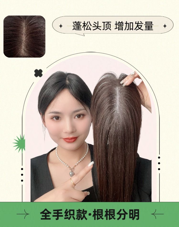 全手织女士递针假发片发缝专用款遮白发增发量打造高颅顶辫子发