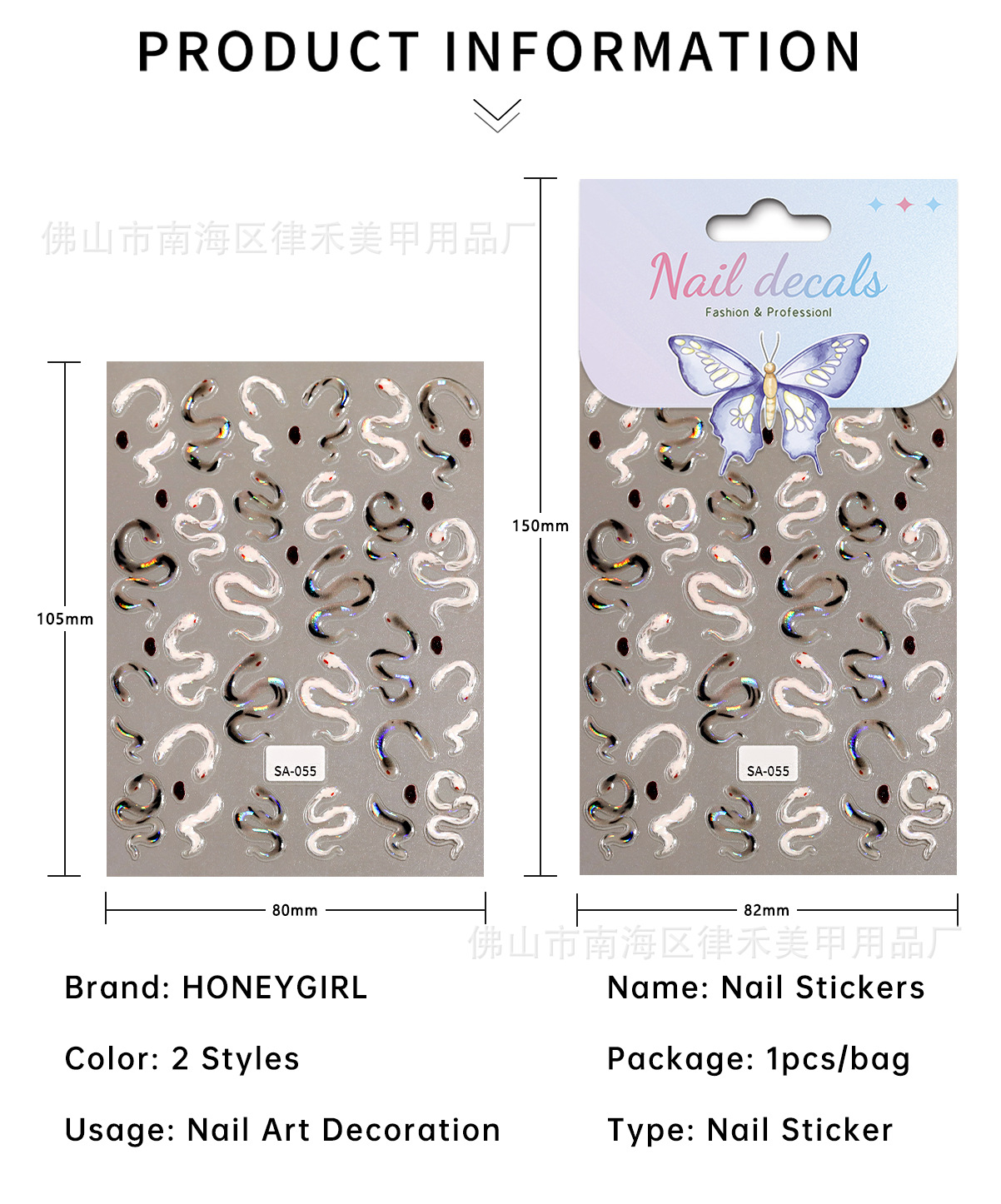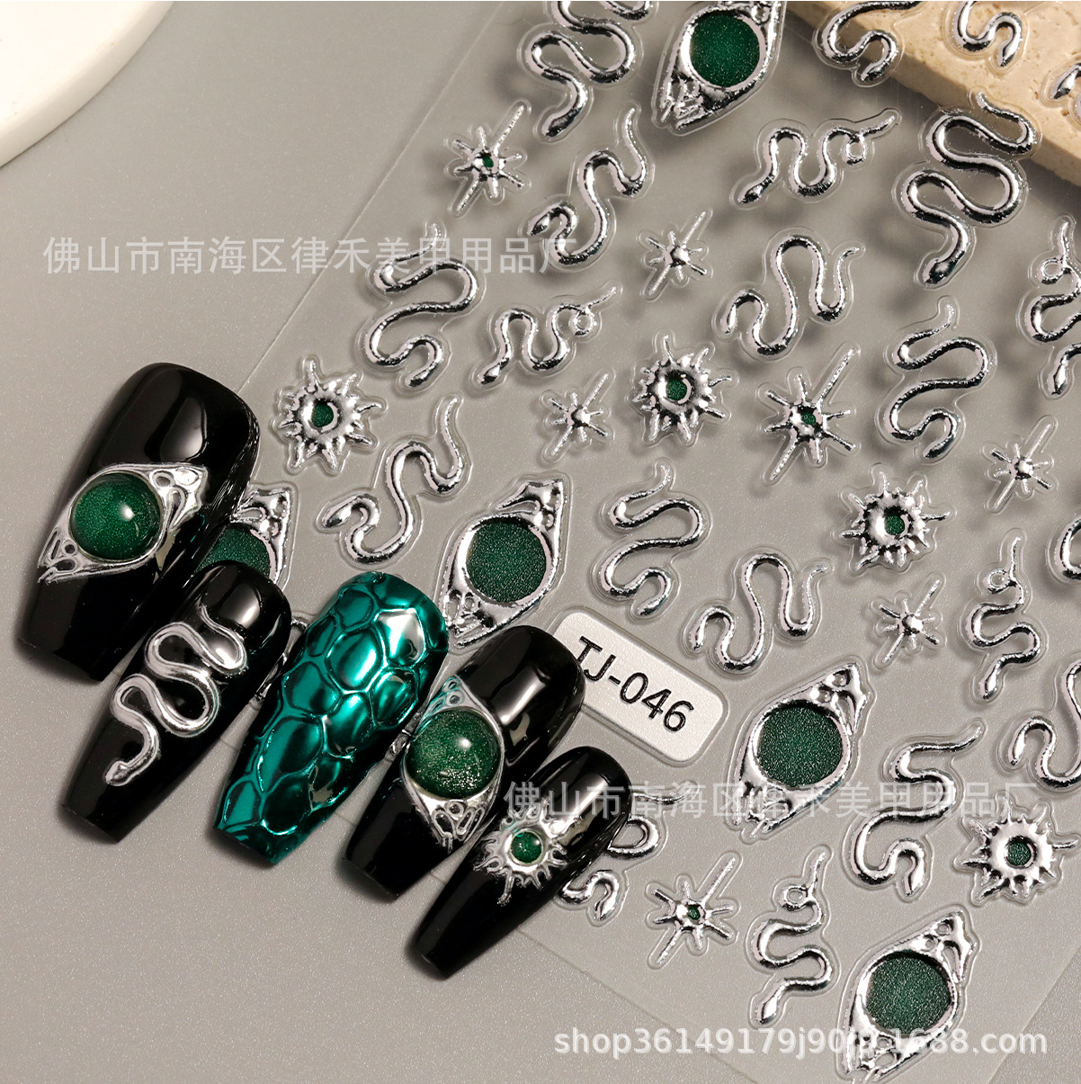 国境を越えて人気のある極光翡翠銀蛇ネイルシールは贅沢で高級な翡翠幻彩銀色爪シール装飾である