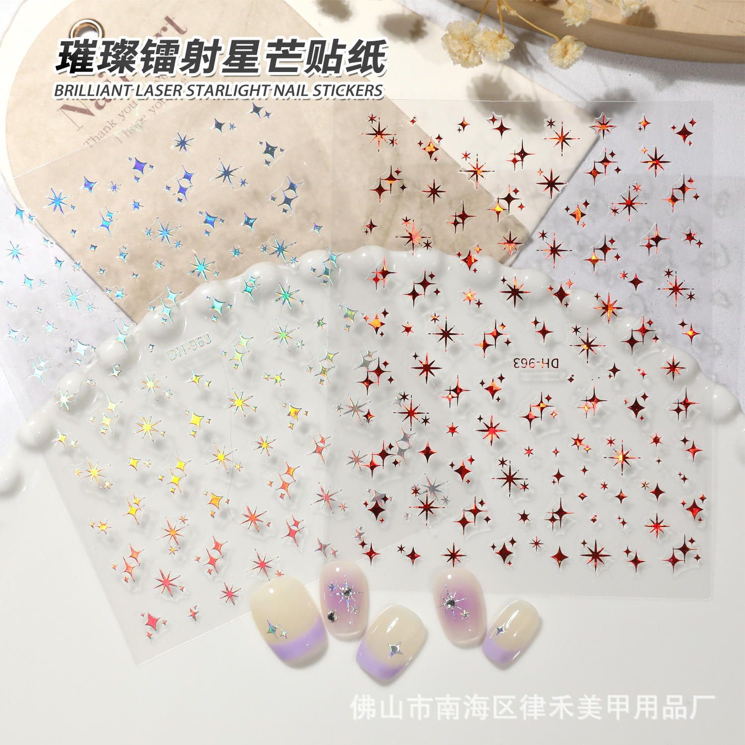 网红爆款轻奢烫金烫银星星美甲贴纸超闪镭射星芒小星星指甲贴批发