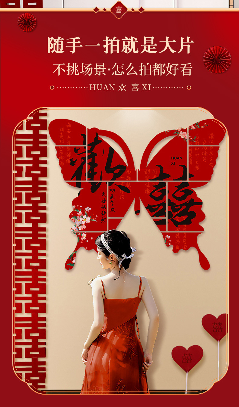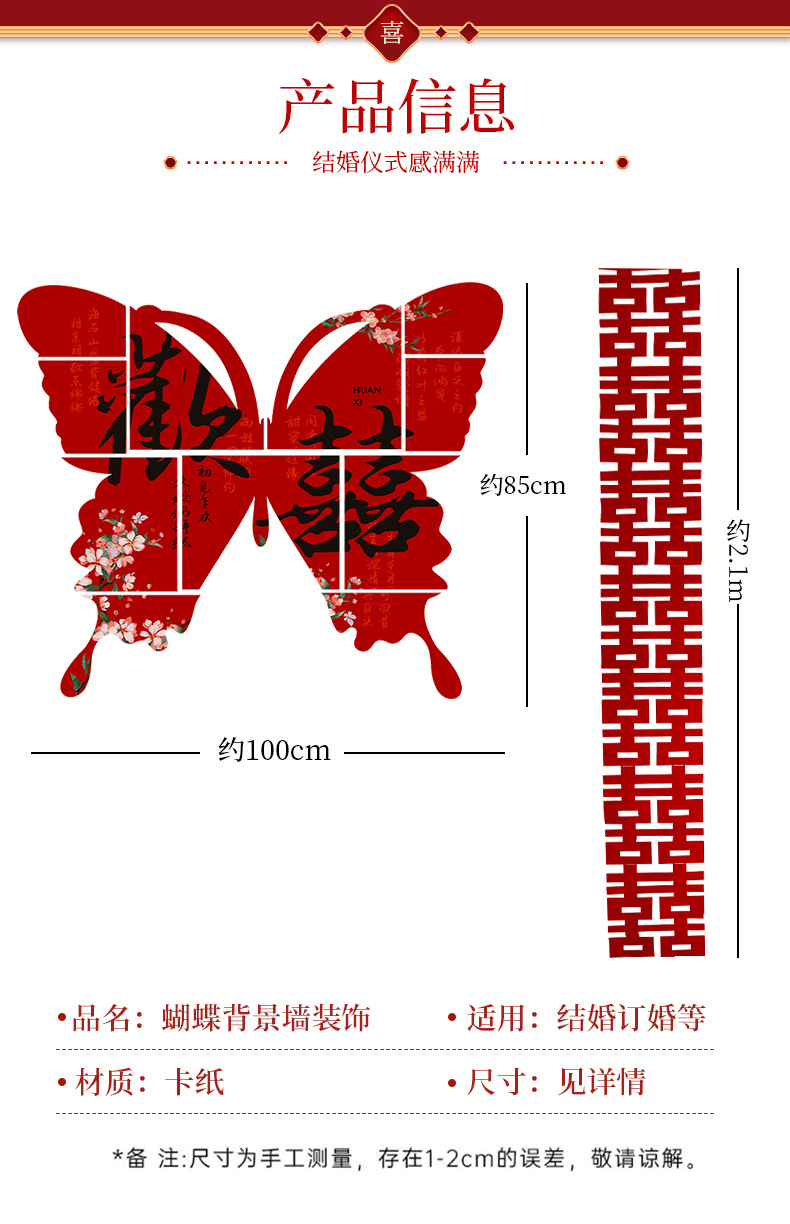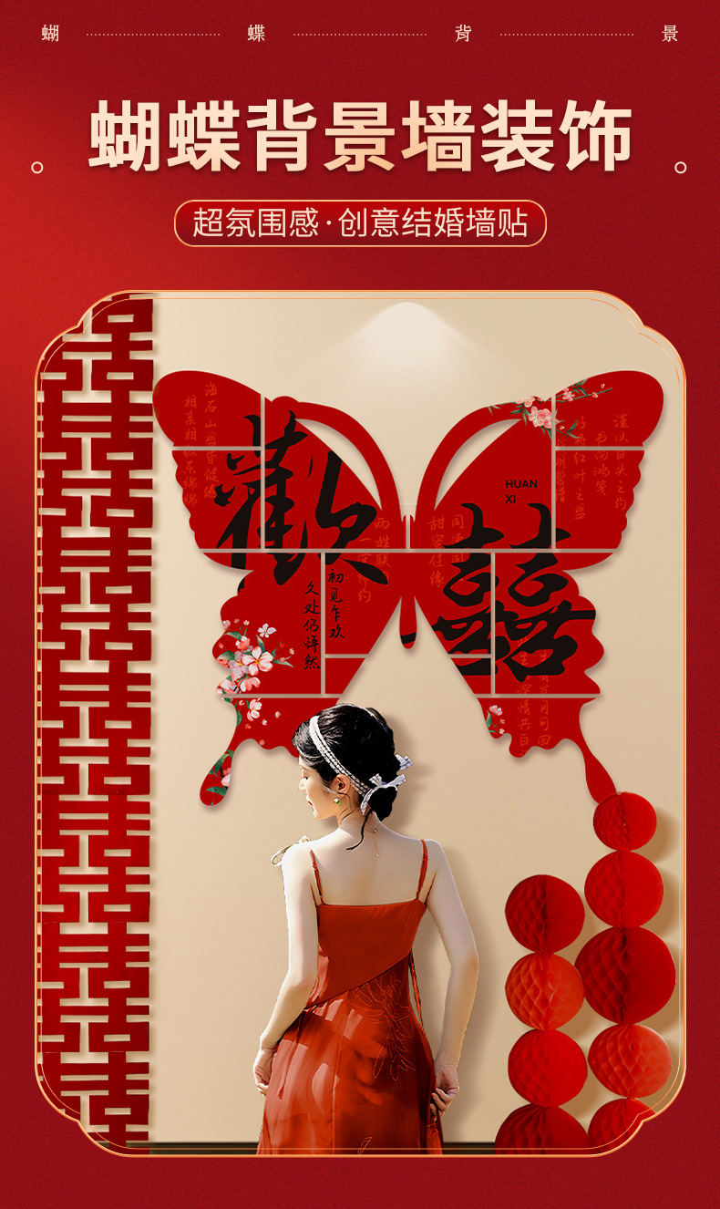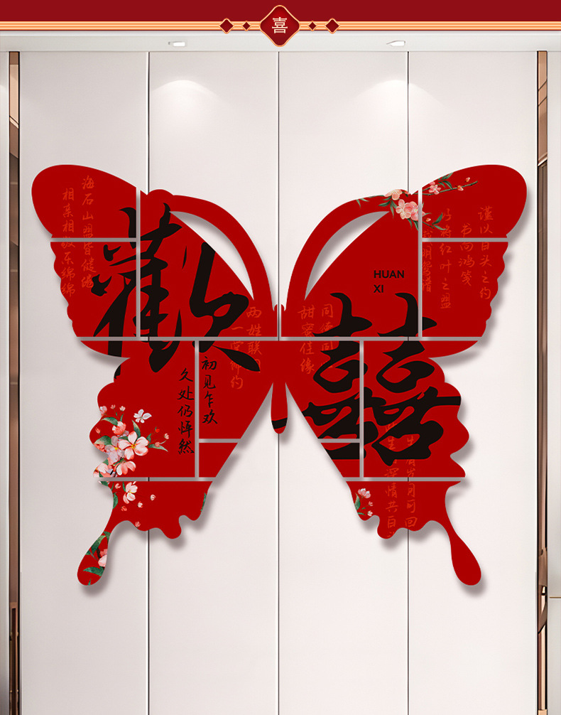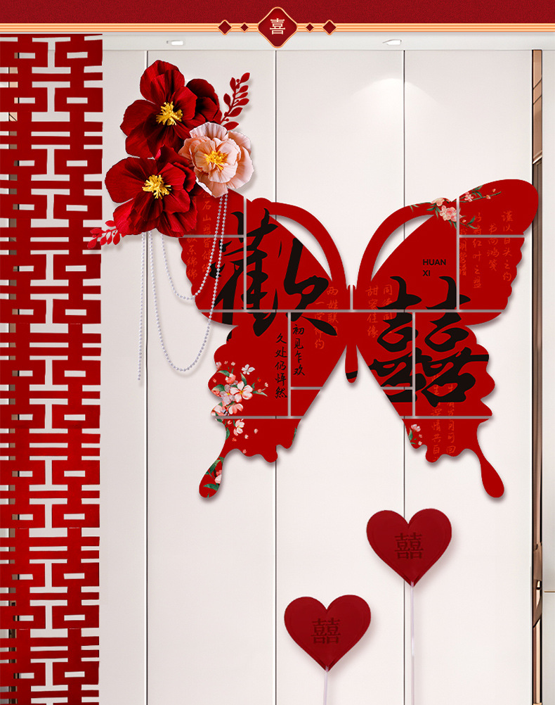结婚蝴蝶装饰背景墙婚房布置套装新房卧室客厅男女方晨袍拍照套装
