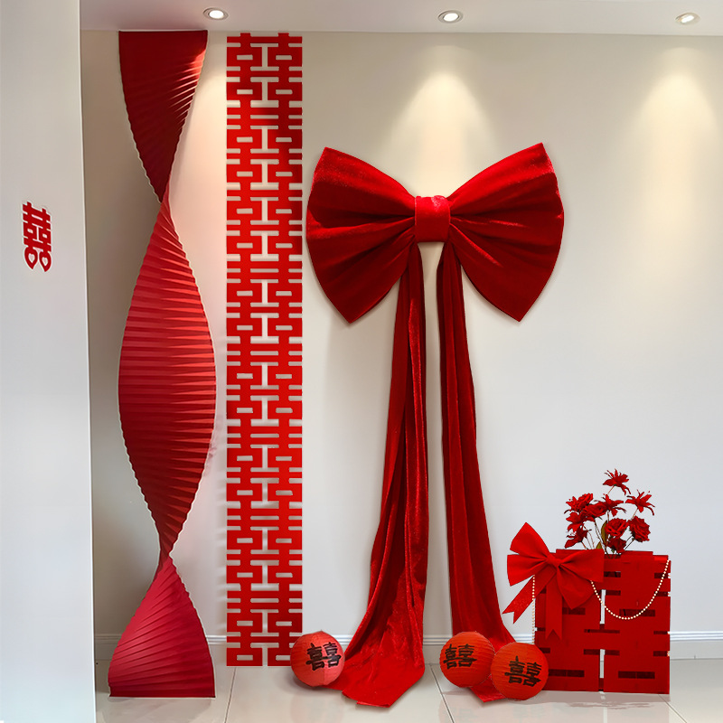 红丝绒超大蝴蝶结婚房布置套装网红结婚装饰婚礼浪漫氛围拍照背景