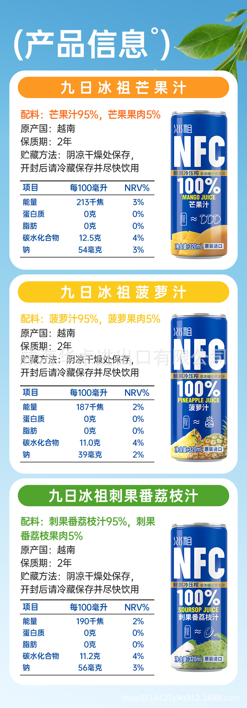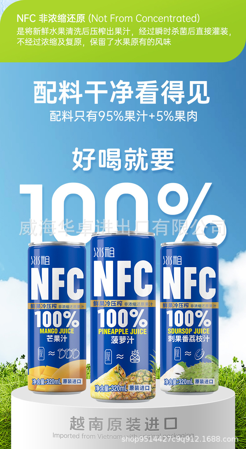 ベトナム輸入九日氷祖NFCジュース新鮮果冷搾り非還元パイナップルジュースマンゴーレイシジュース飲料