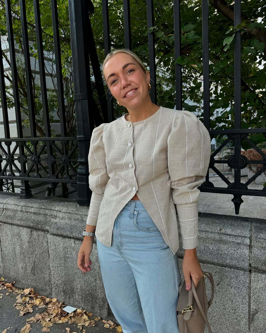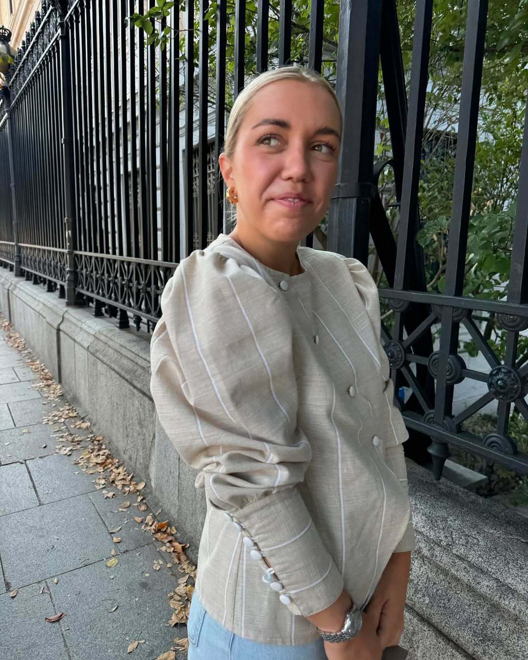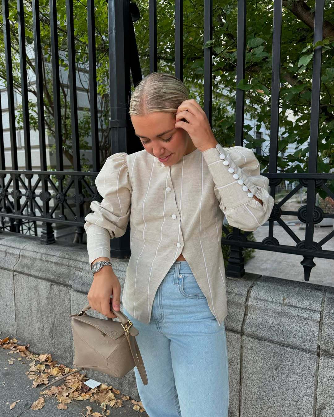 街頭の実写新商品の泡袖の不規則な斜めの辺はシャツのクロスボーダーの高級なデザイン感のシャツの上着を掛けます。