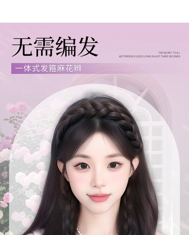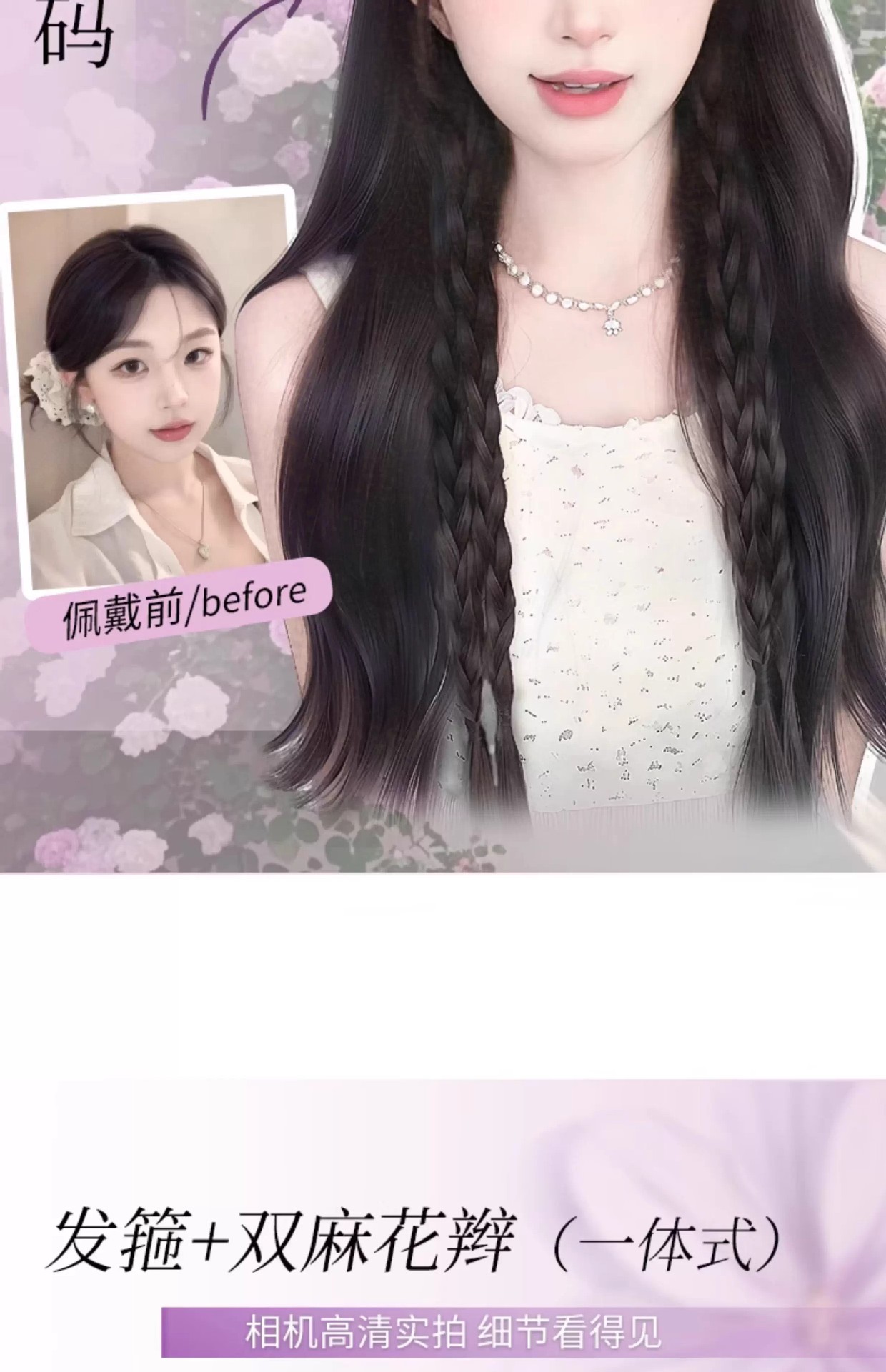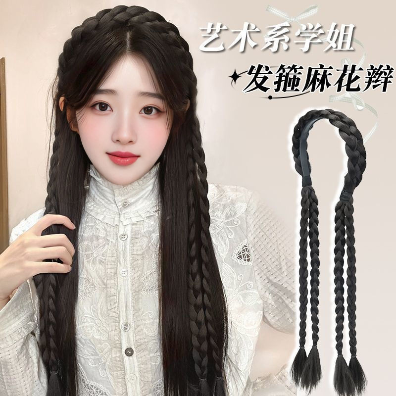 假发女一体式假发发箍麻花辫假发温柔气质款新款公主时尚长款发箍