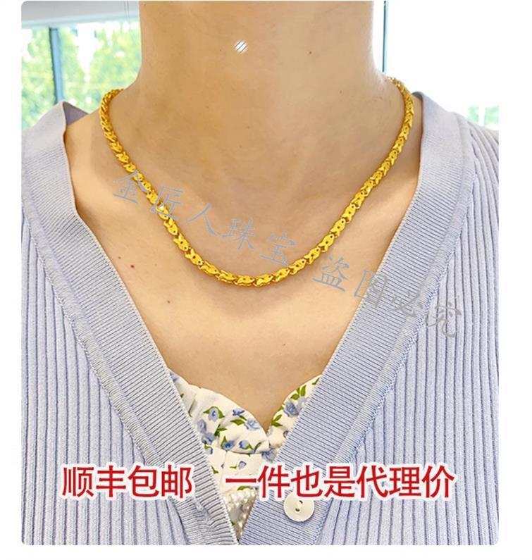 金包銀包金ネックレス999平o鎖骨鎖細金古法ファッション百合首鎖男女金は色落ちしない
