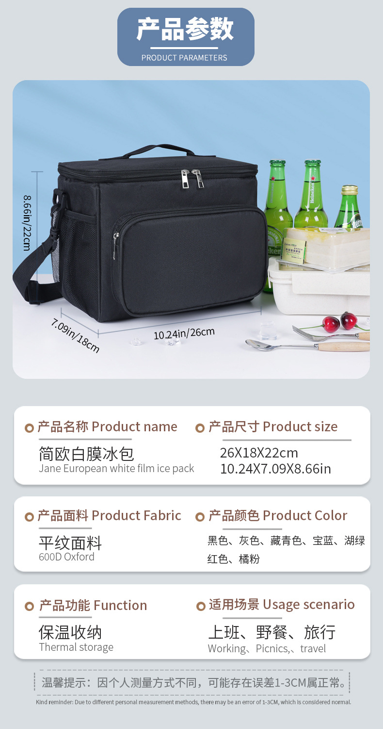 クロスボーダーオックスフォード布厚みのあるポータブルランチバッグポータブル鮮度保持アイスバッグオフィスワーカー旅行弁当箱断熱バッグ