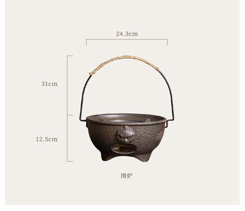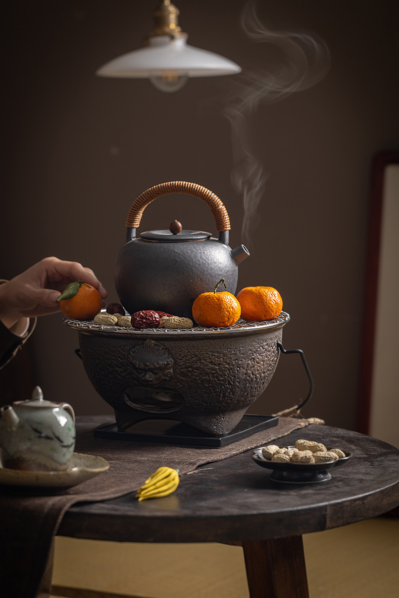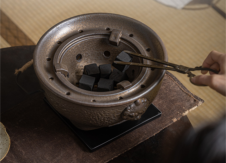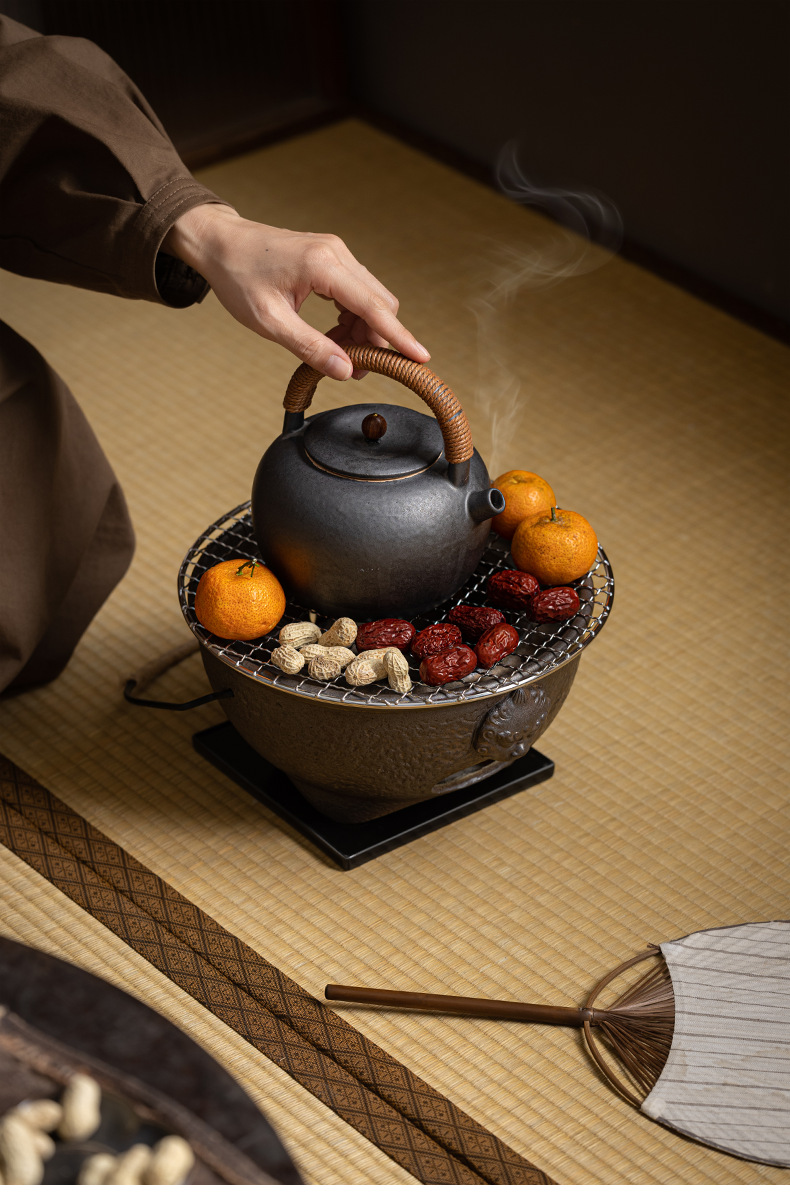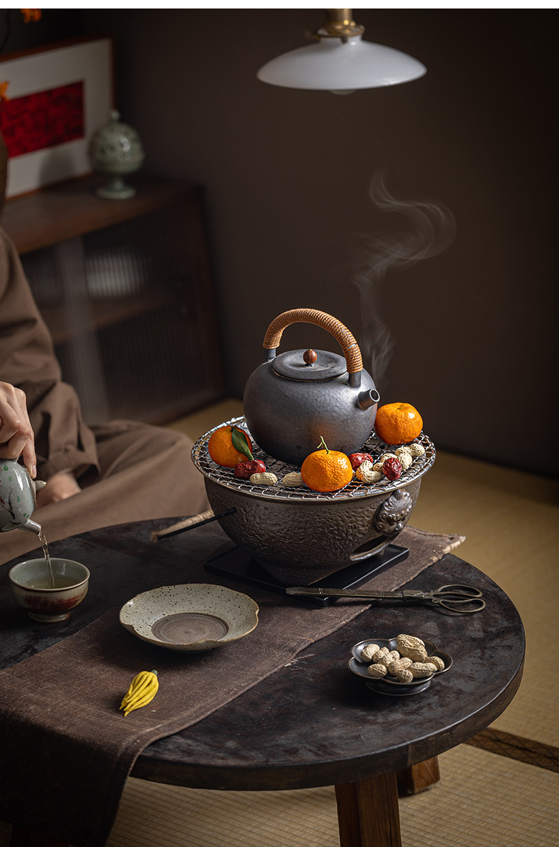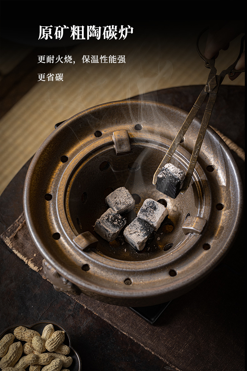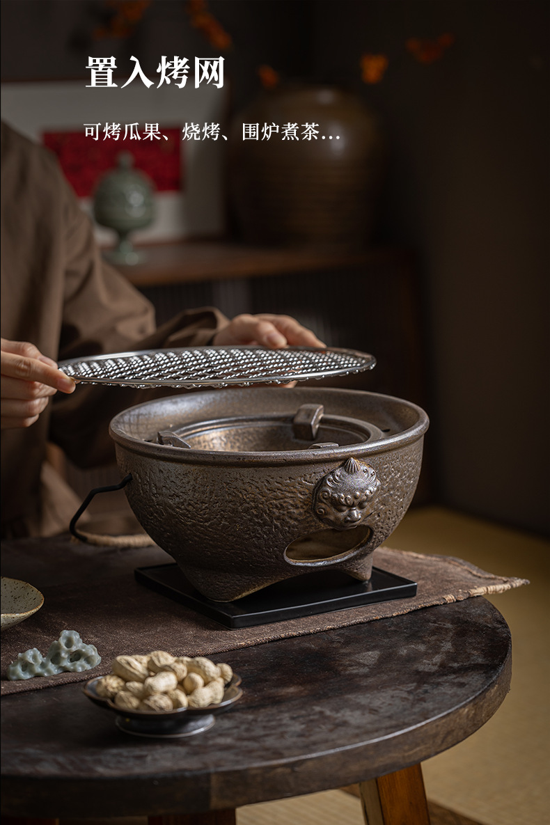 复古粗陶围炉炭火煮茶壶户外野营碳烤煮茶炉单底座小型便携烤茶炉