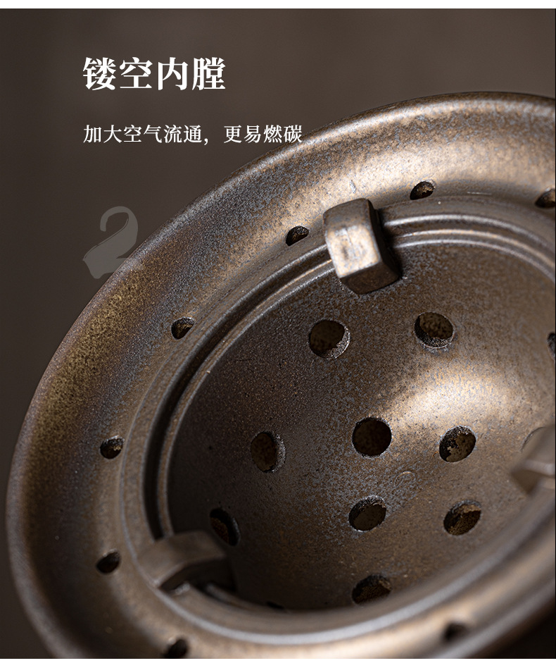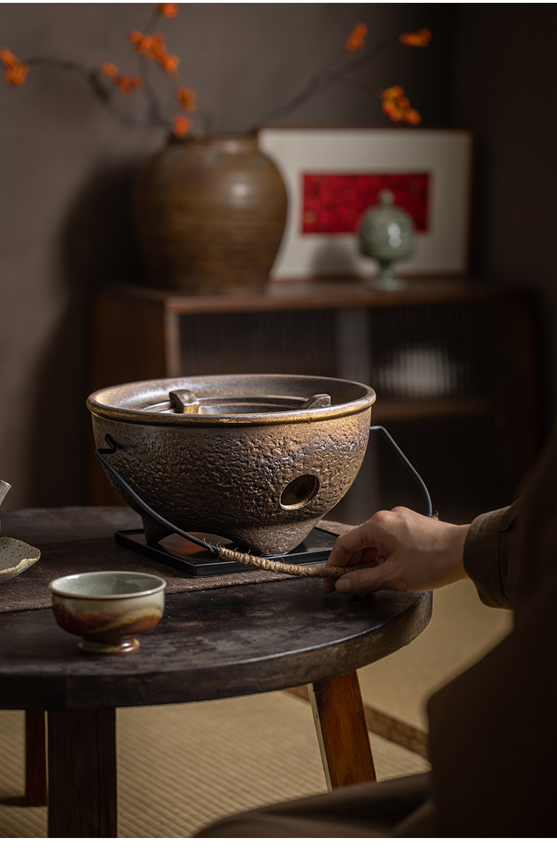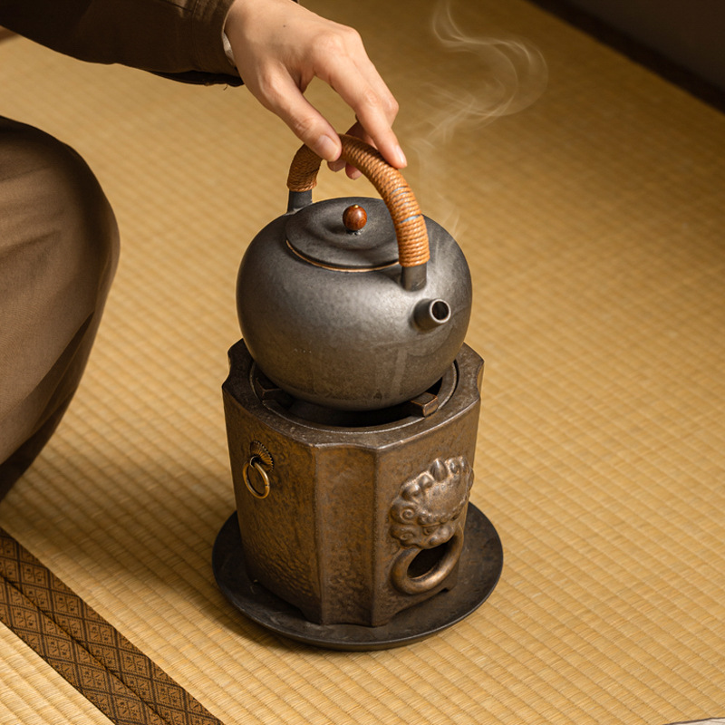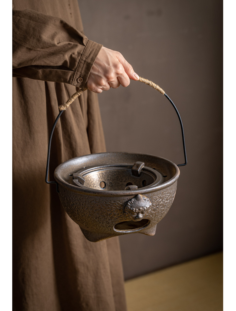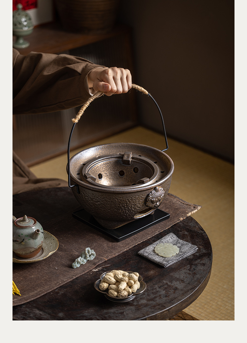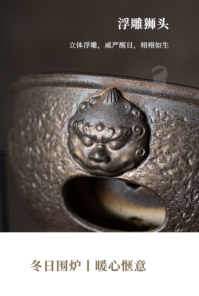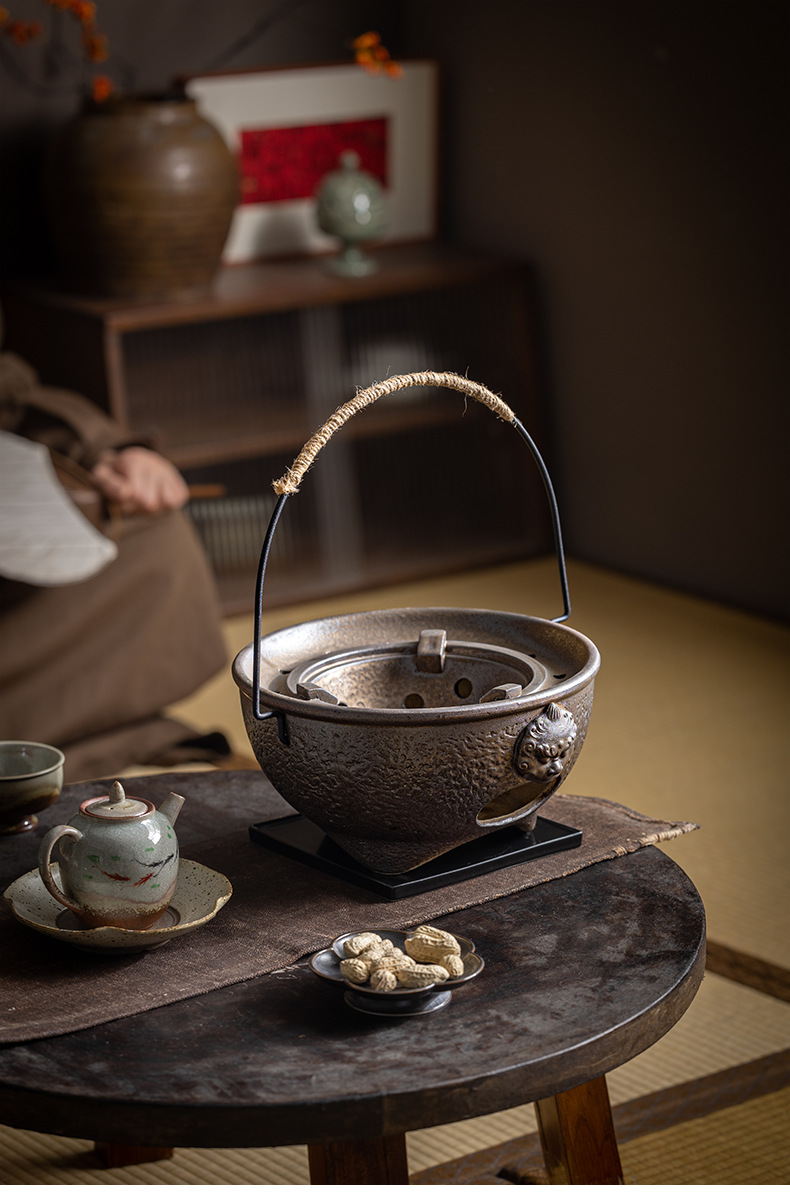 复古粗陶围炉炭火煮茶壶户外野营碳烤煮茶炉单底座小型便携烤茶炉