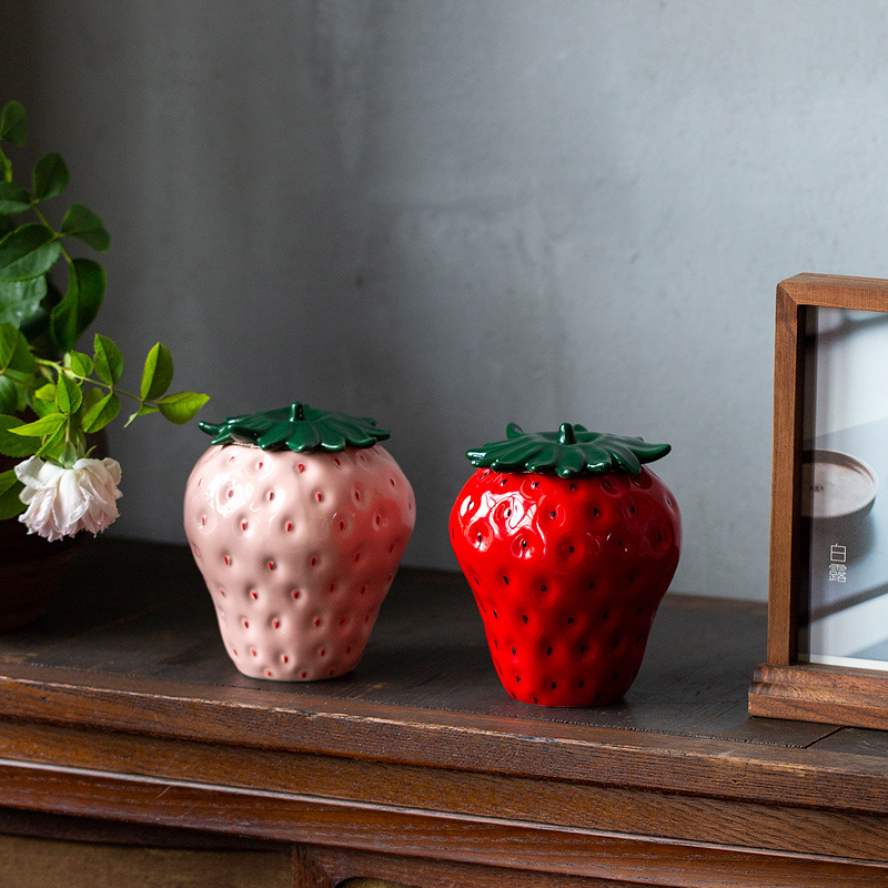 康禾草莓茶叶罐中式创意陶瓷红茶储存罐密封罐手工防潮迷你储物罐