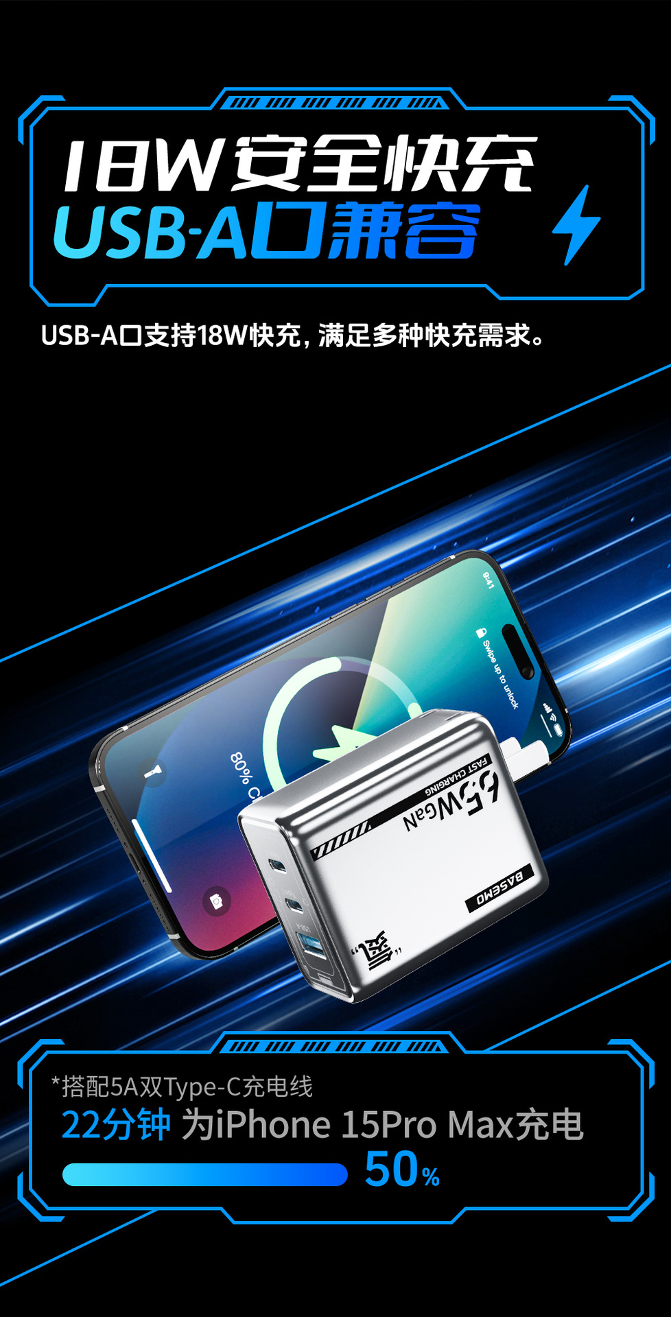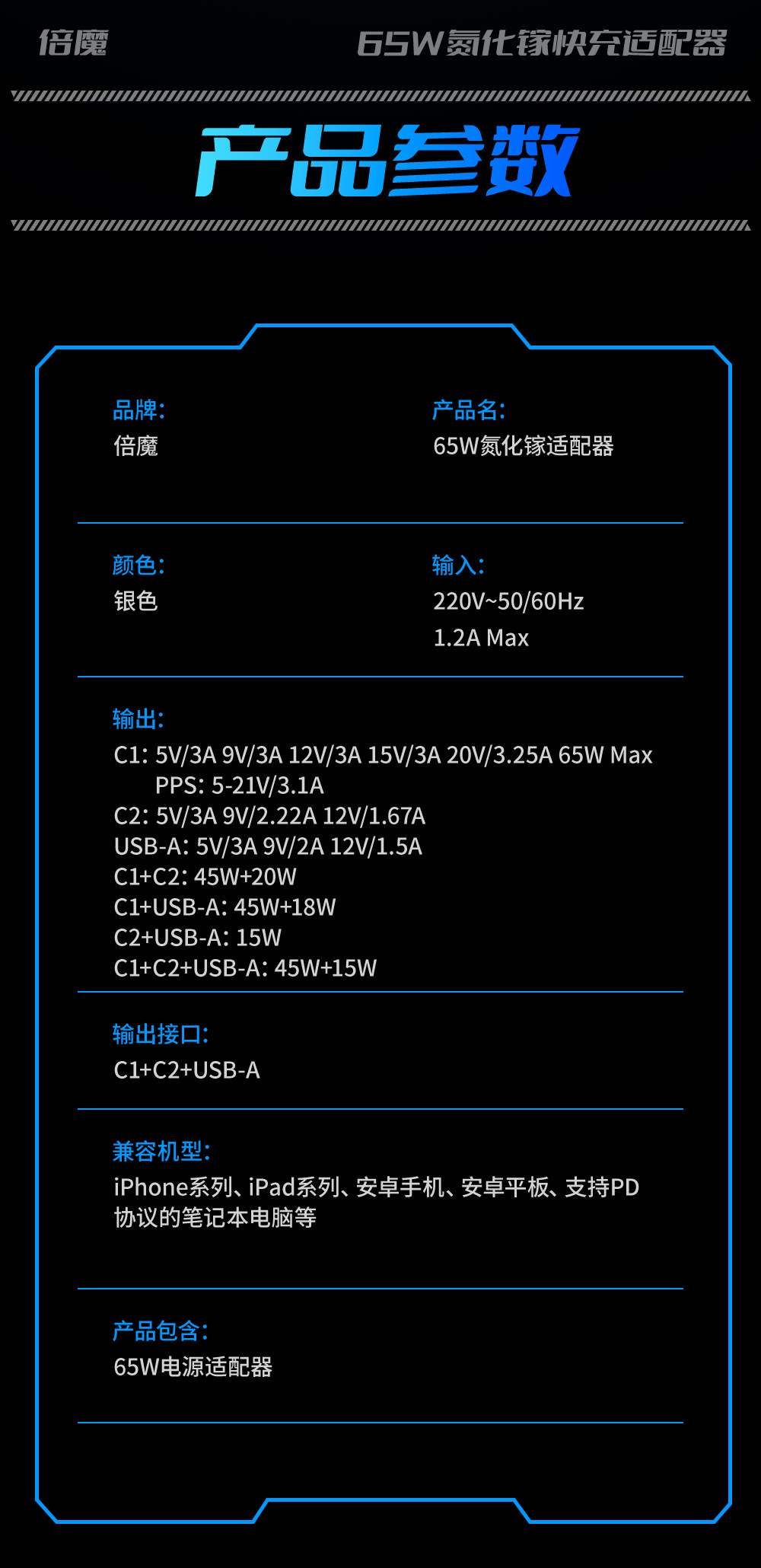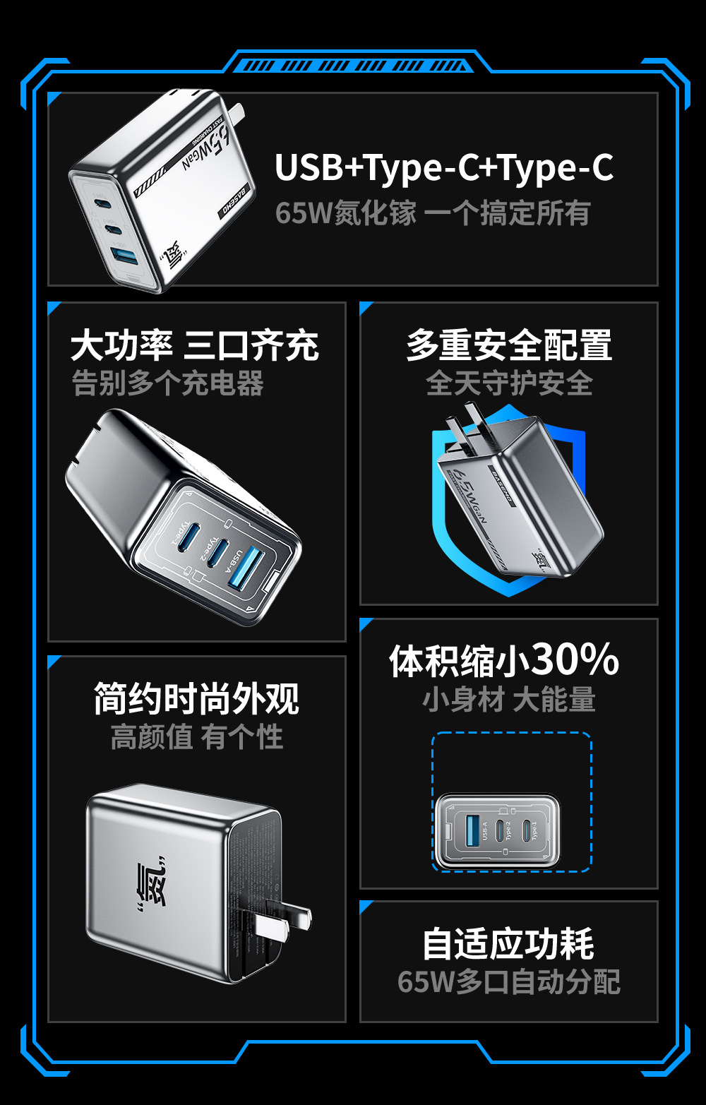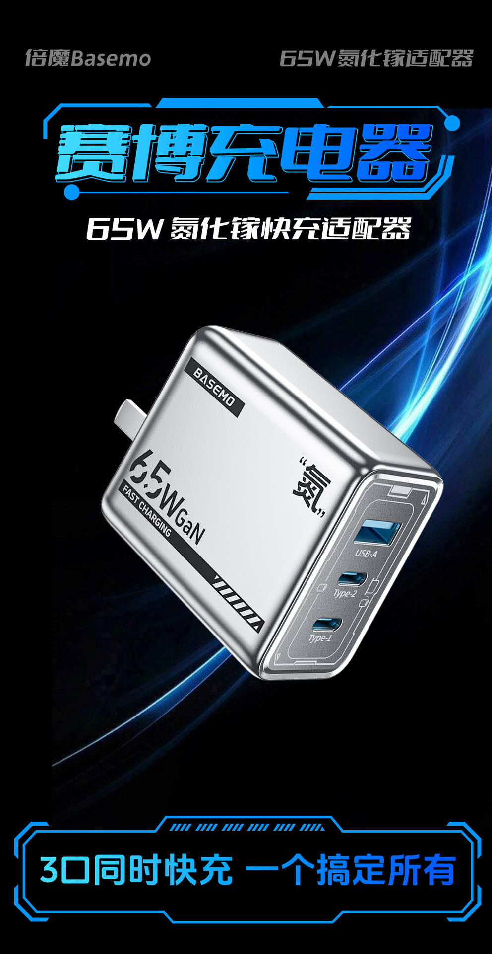 倍魔65W' 窒素 '系角形窒化ガリウム充電ヘッド三合一急速充電器は華為リンゴを適用する