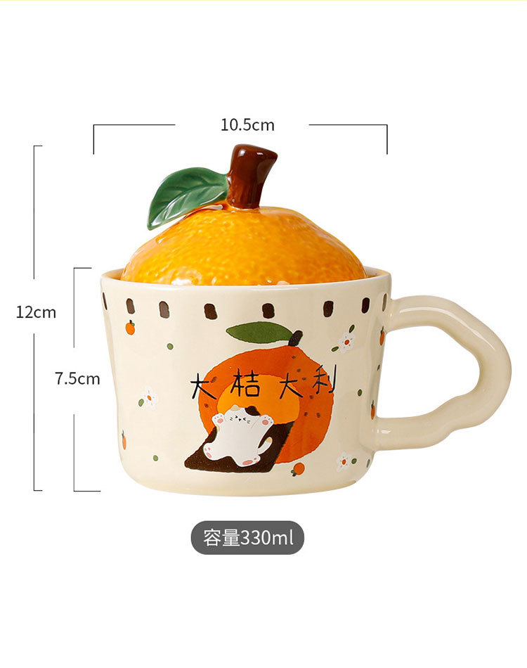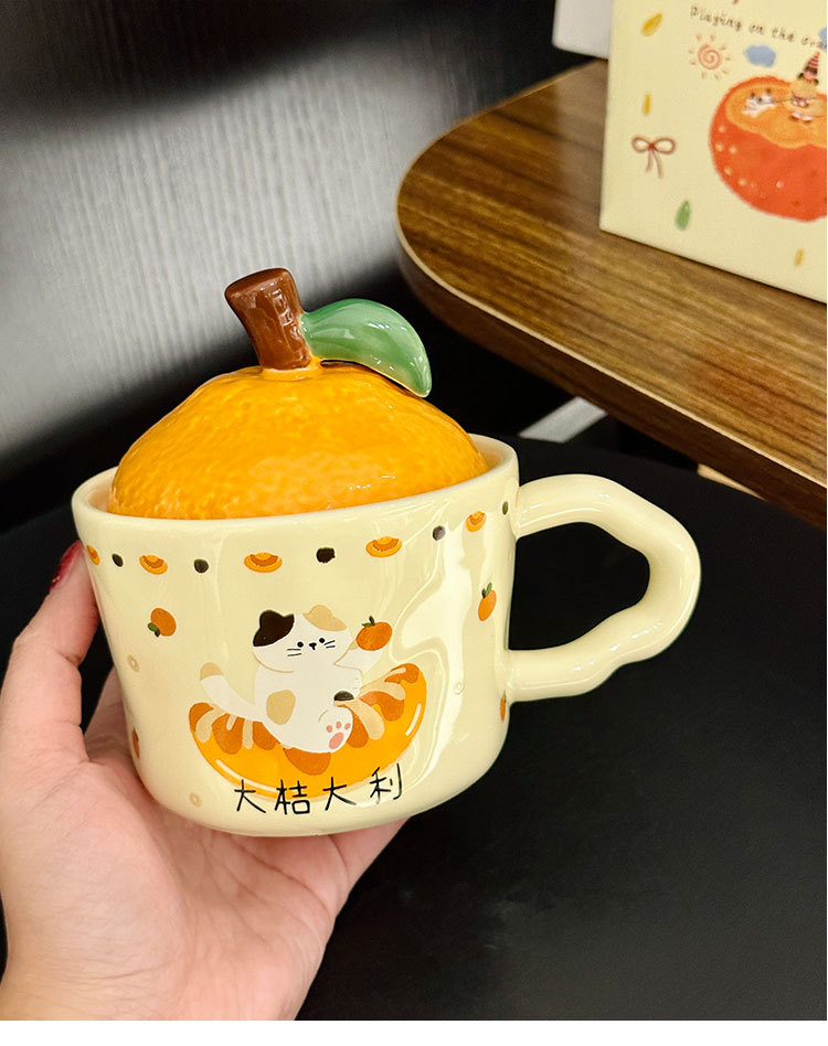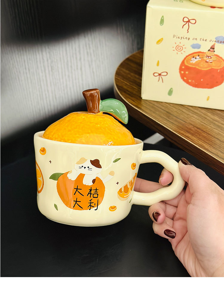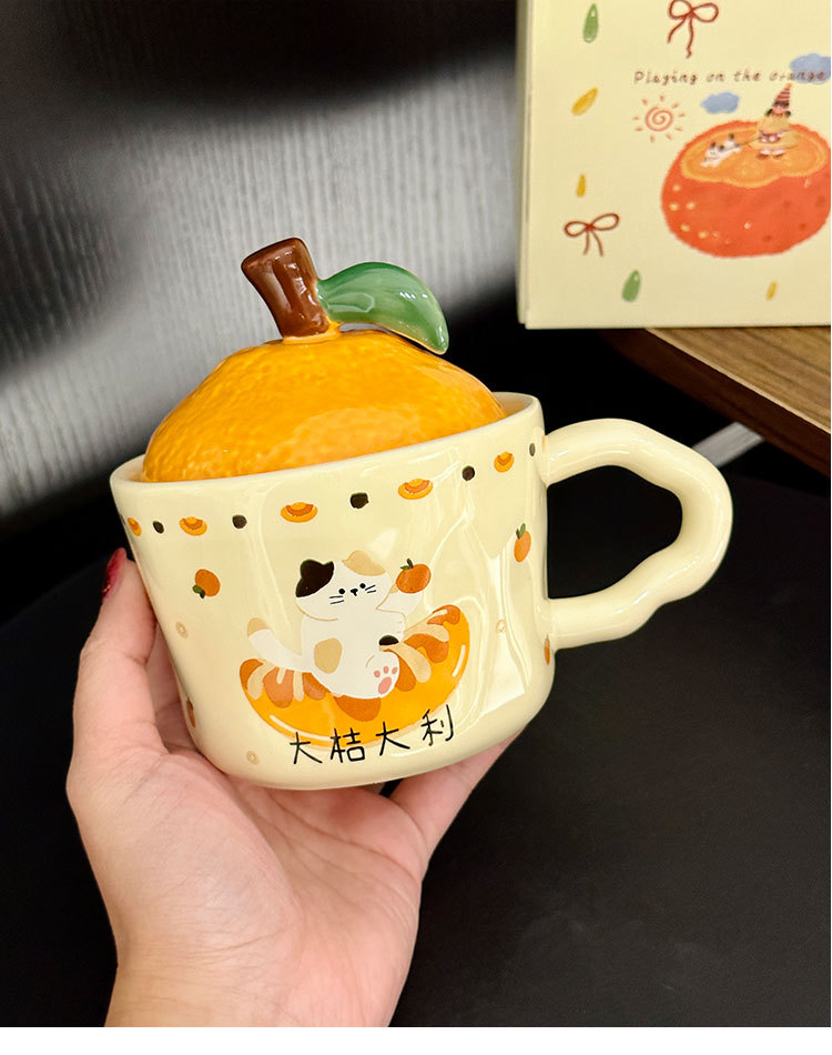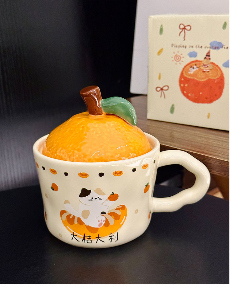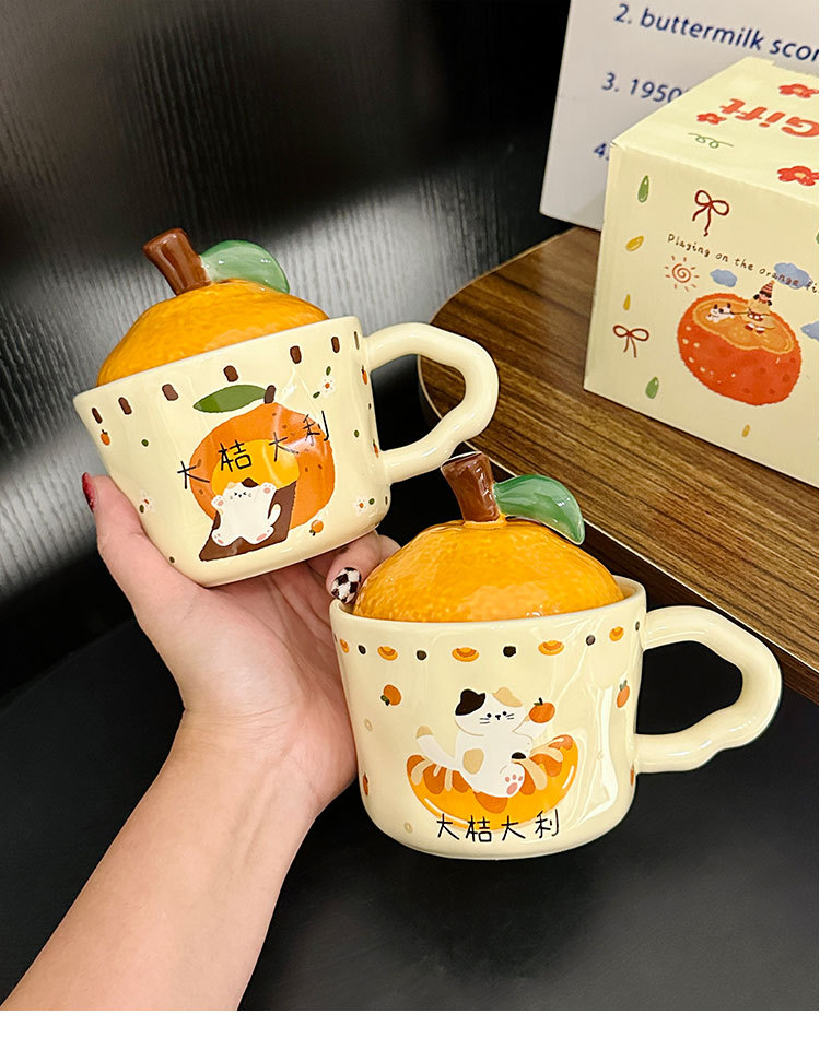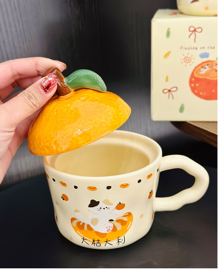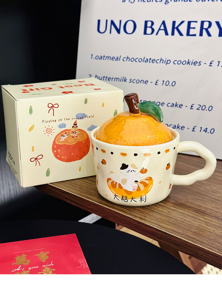 萌え味みかん猫マグカップ蓋付き新年祝い陶磁器カップ大吉イタリアから親友プレゼントをプレゼントします。