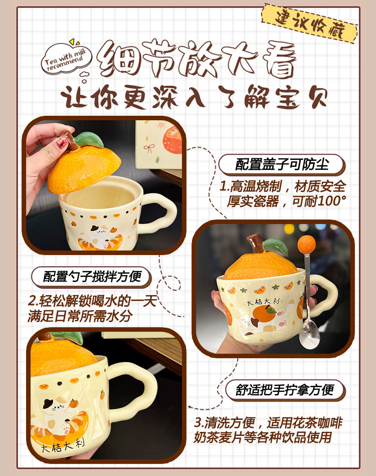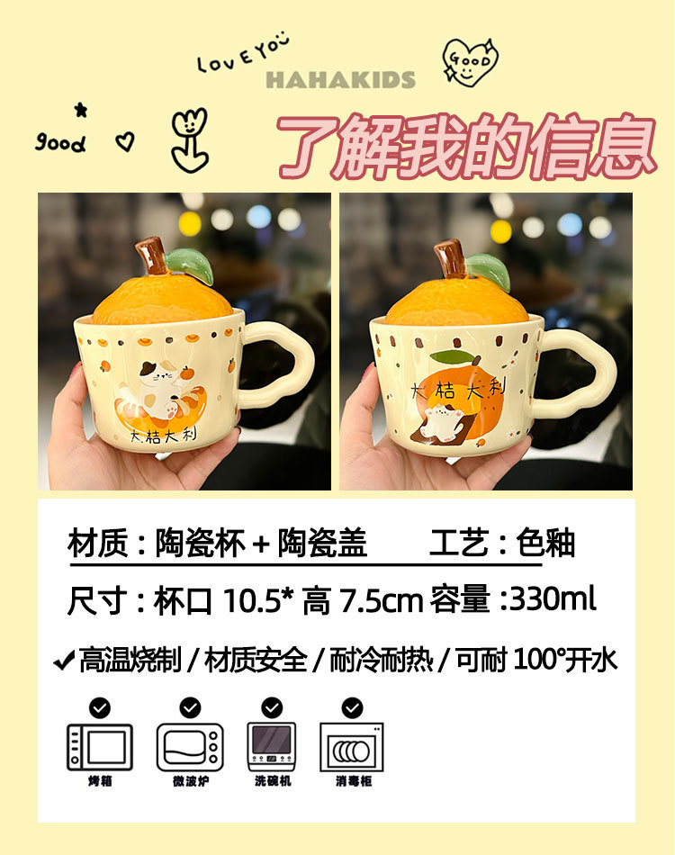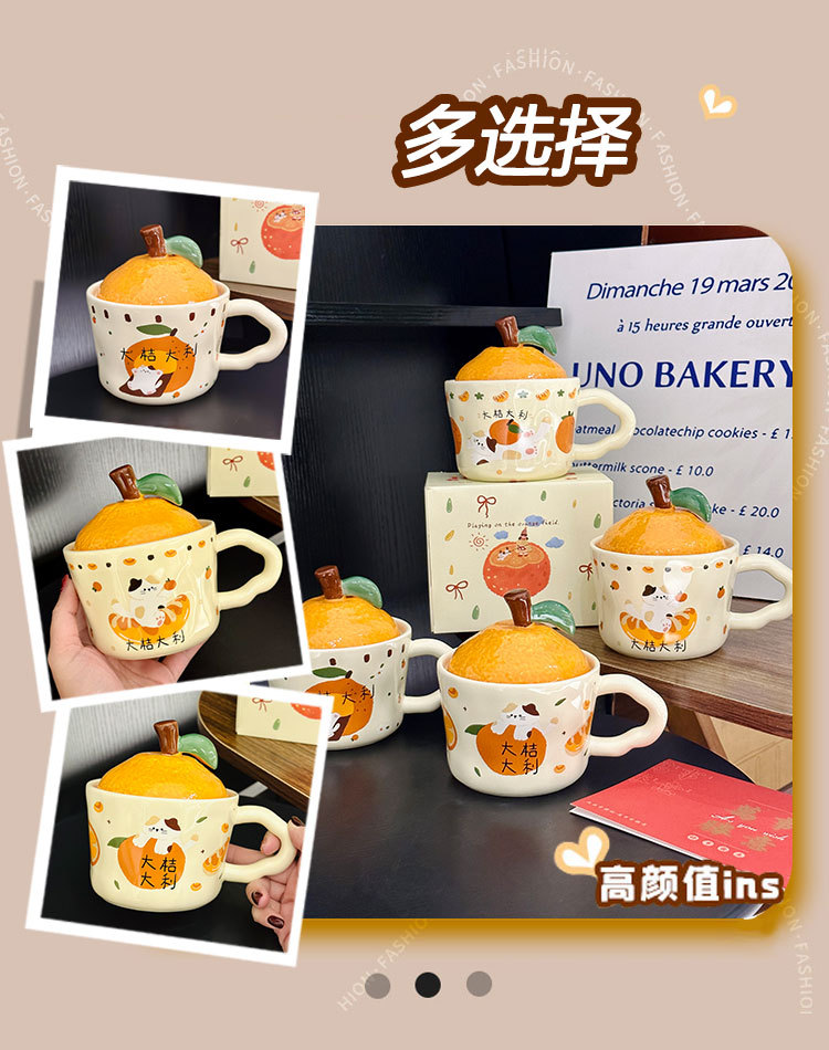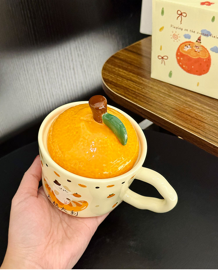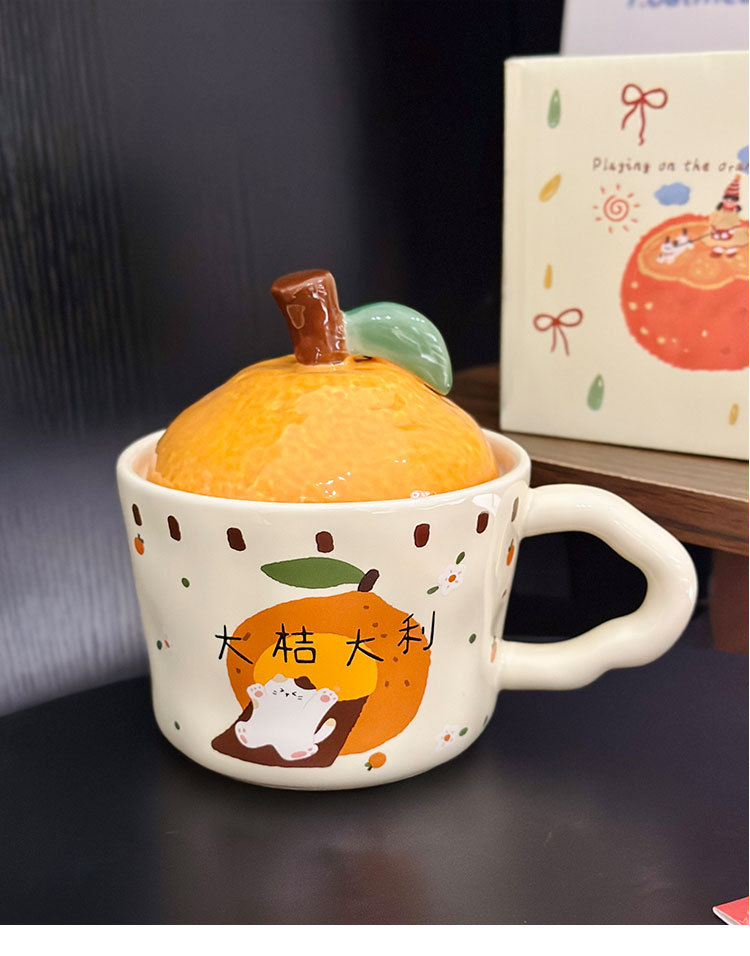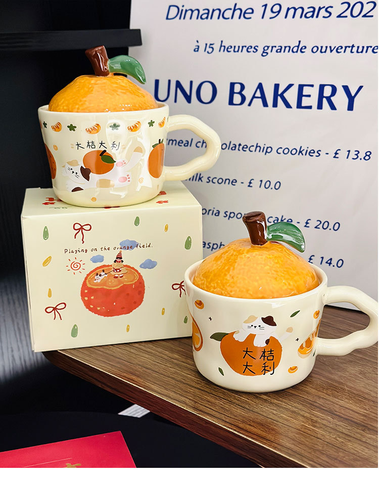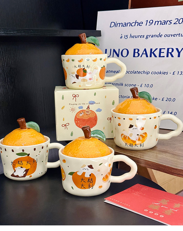 萌え味みかん猫マグカップ蓋付き新年祝い陶磁器カップ大吉イタリアから親友プレゼントをプレゼントします。